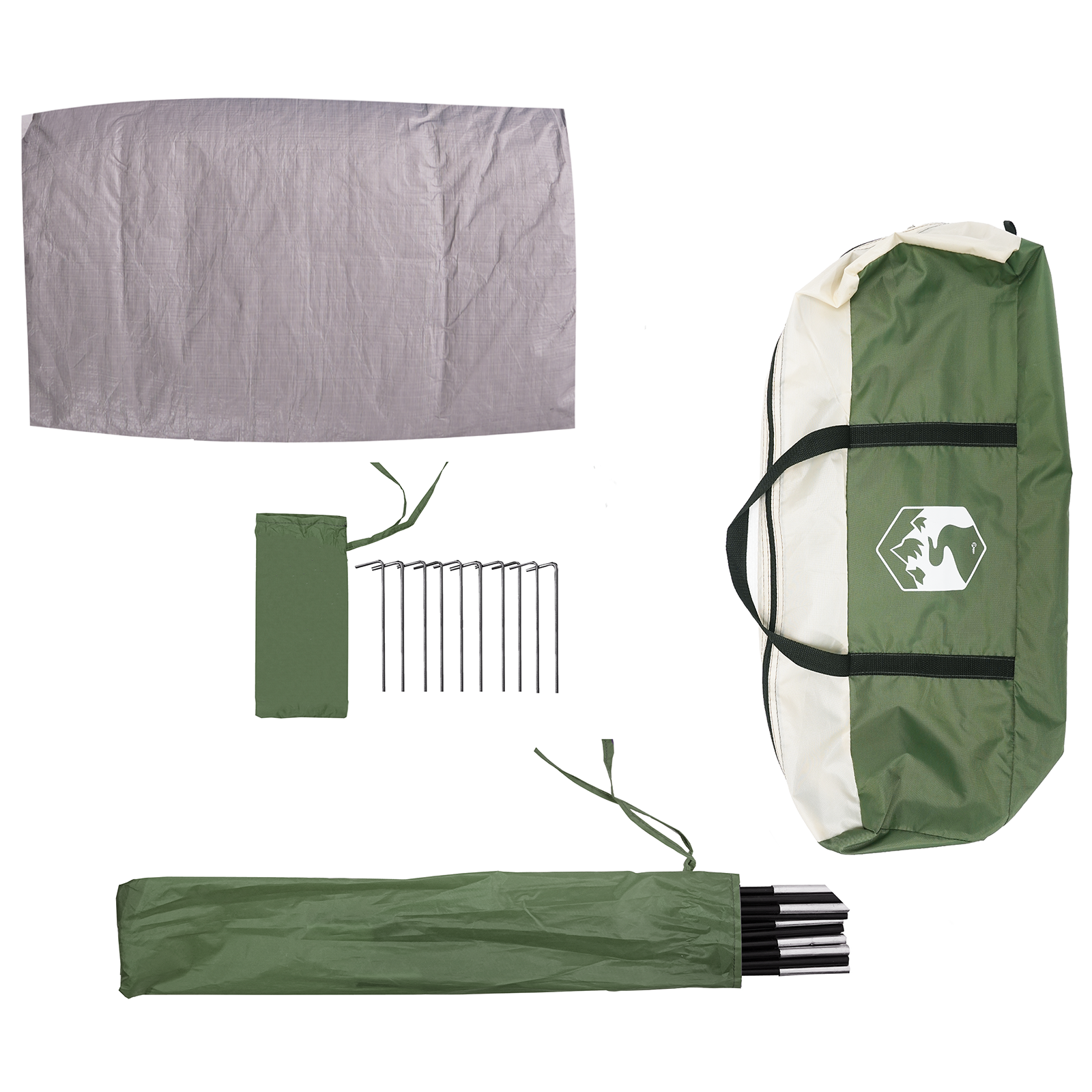- Conținutul livrării: 1 x cort, 3 x stalcă FRP (486 cm), 10 x stalcă FRP (123 cm), 1 x stalcă FRP (697 cm), 4 x funie de sprijin (250 cm), 10 x cârlig, 1 x geantă de transport<\li>