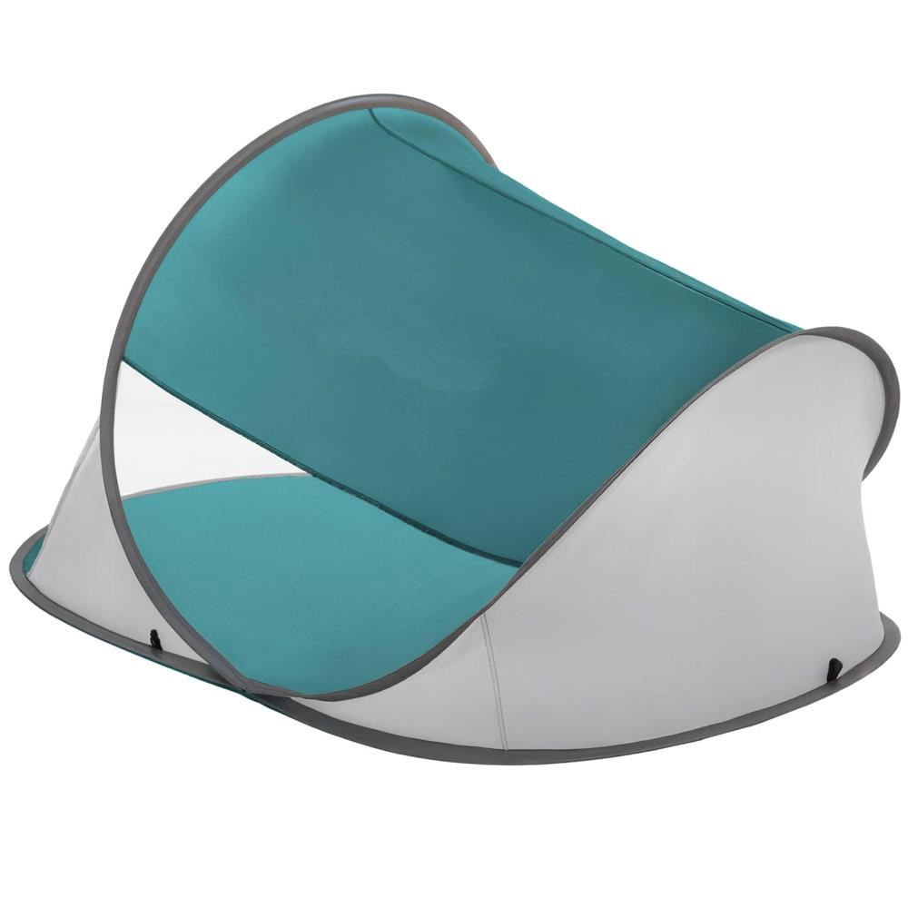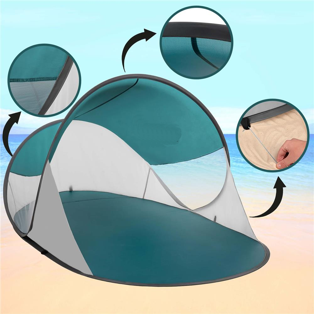 Cort plaja autoexpansibil POP-UP cu protectie UV, podea izolanta si husa transport, 190x120x100 cm, turcoaz si gri Household NewTrend