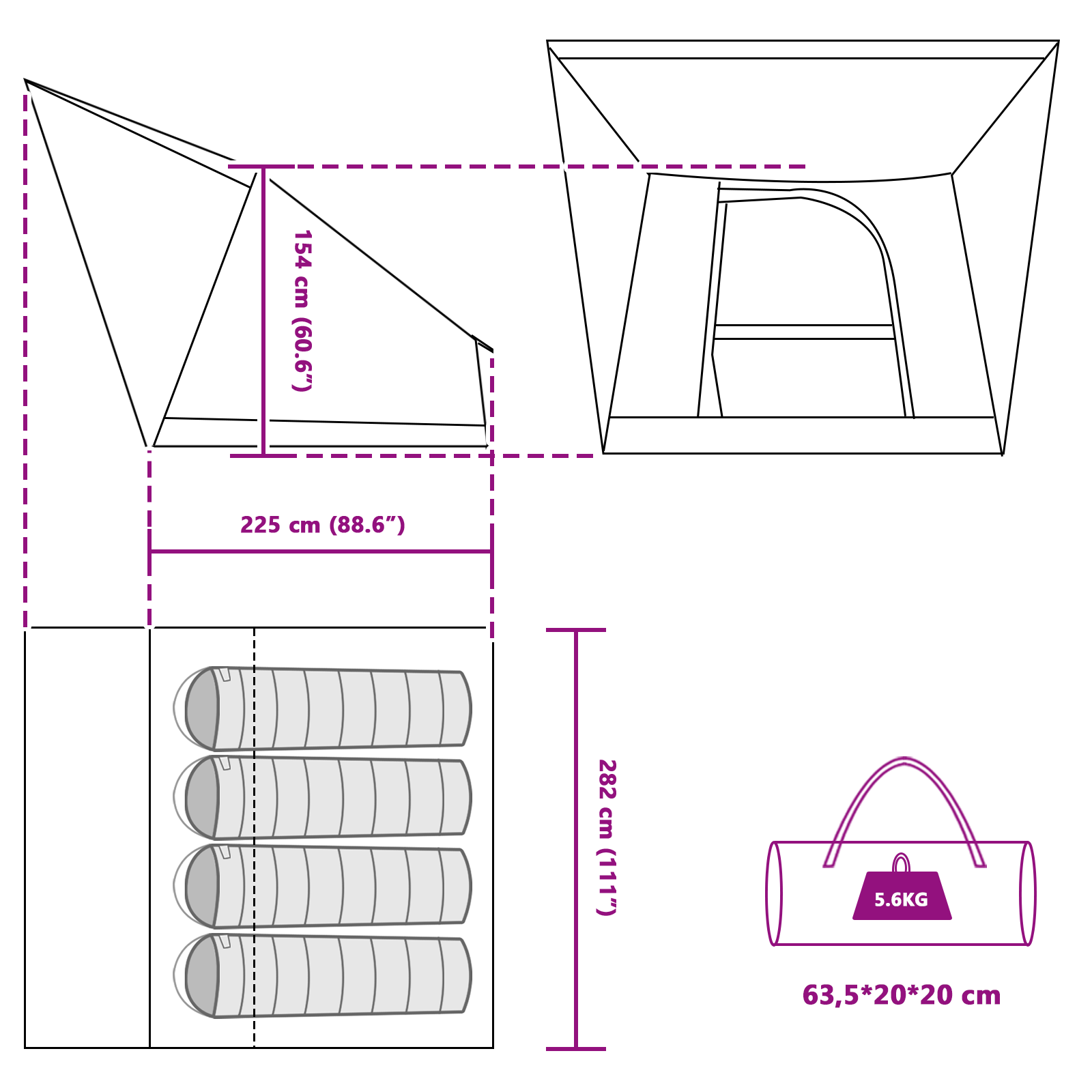 Specificatii Cort Verde 282 x 225 x