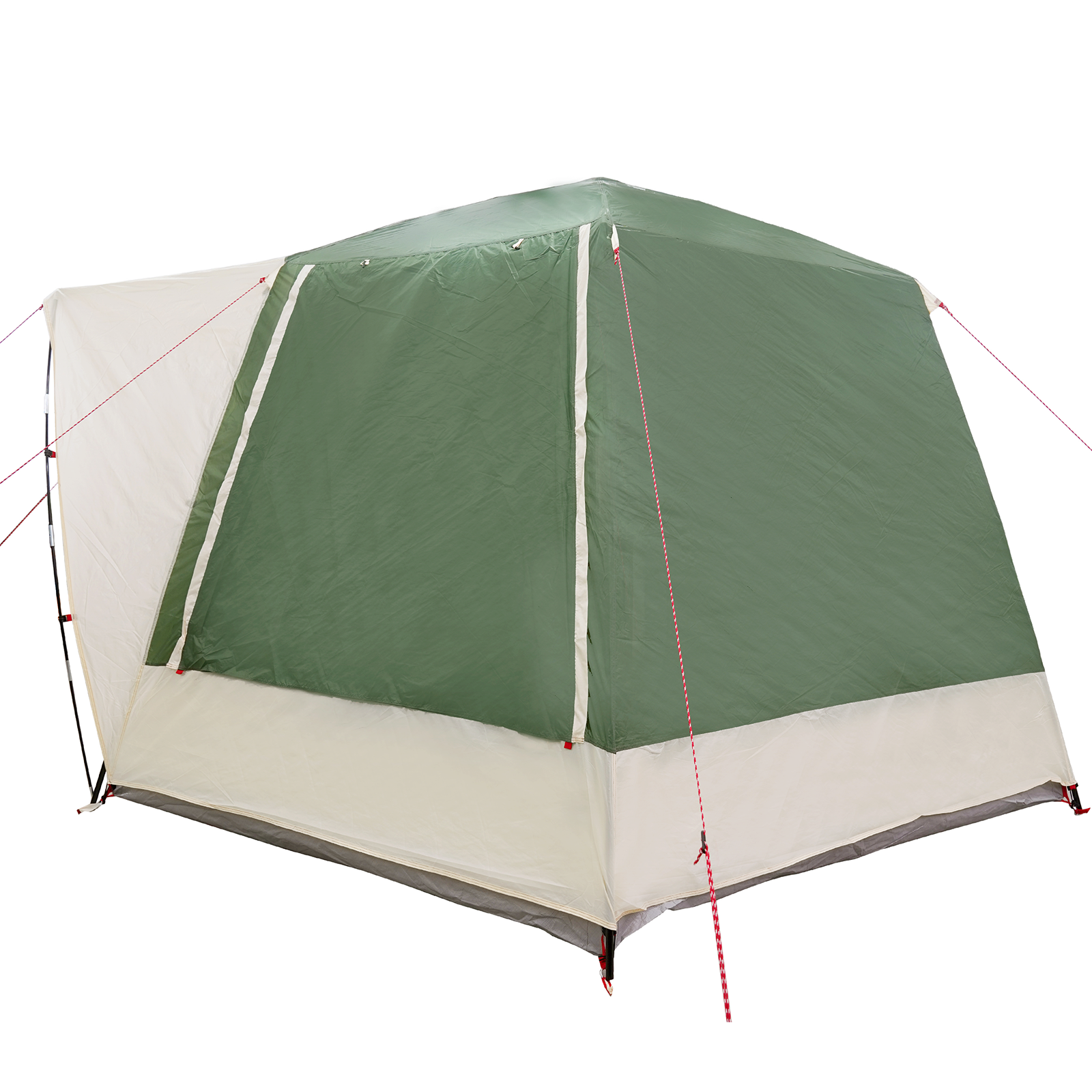 Cortul ăsta spațios e perfect pentru toate escapadele tale în natură. Are un vibe modern și stylish, dar e și super funcțional, fiind ideal pentru campere care vor și aspect, dar și utilitate. E plin de spațiu pentru dormit și pentru stocat echipamentul, așa că e perfect pentru cupluri sau familii care sunt mereu pe drumuri. Forma de cabană îi dă stabilitate și creează o atmosferă confortabilă, oferind un loc fain de refugiu de vreme, indiferent de sezon.
