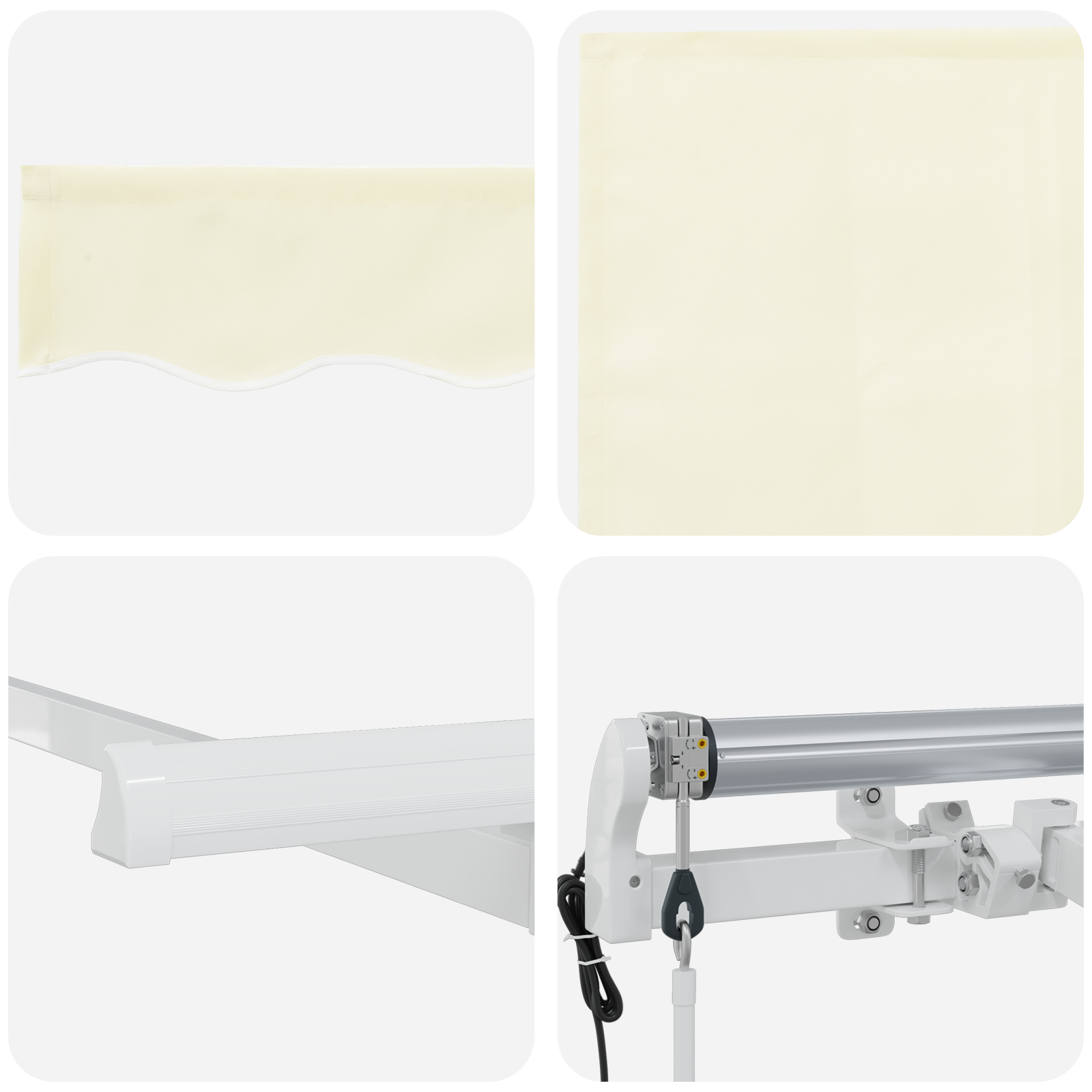 - Componente Incluse: În pachet găsești țesătura pergolei, un cadru electric pentru operare ușoară, o telecomandă practică și un stor. Toate părțile astea lucrează împreună pentru a-ți oferi o experiență relaxantă și friendly la exterior.