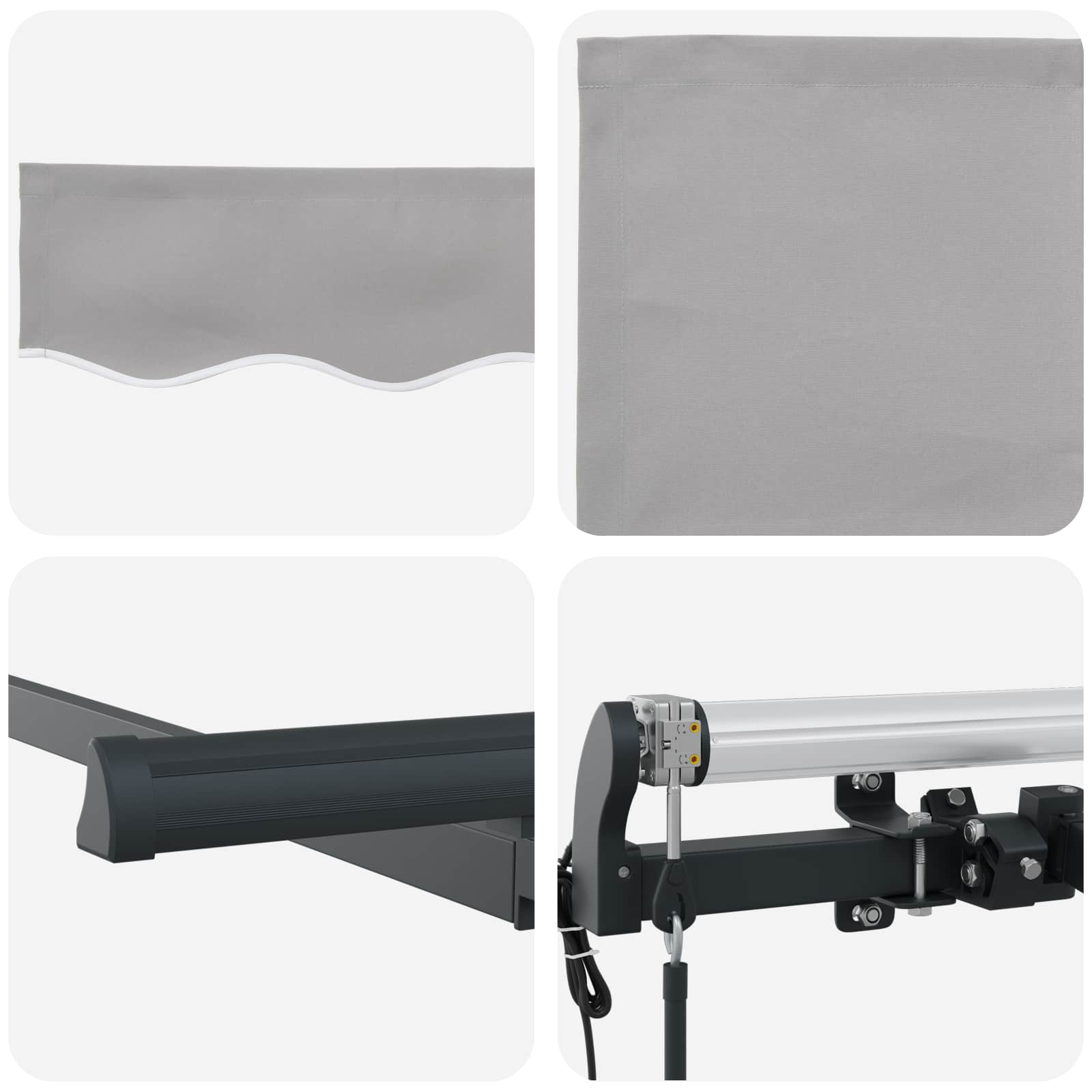 - Materiale durabile: Construcția din țesătură rezistă bine la razele UV și la apă. Cadrele din aluminiu fac marchiza robustă, dar ușor de manevrat.