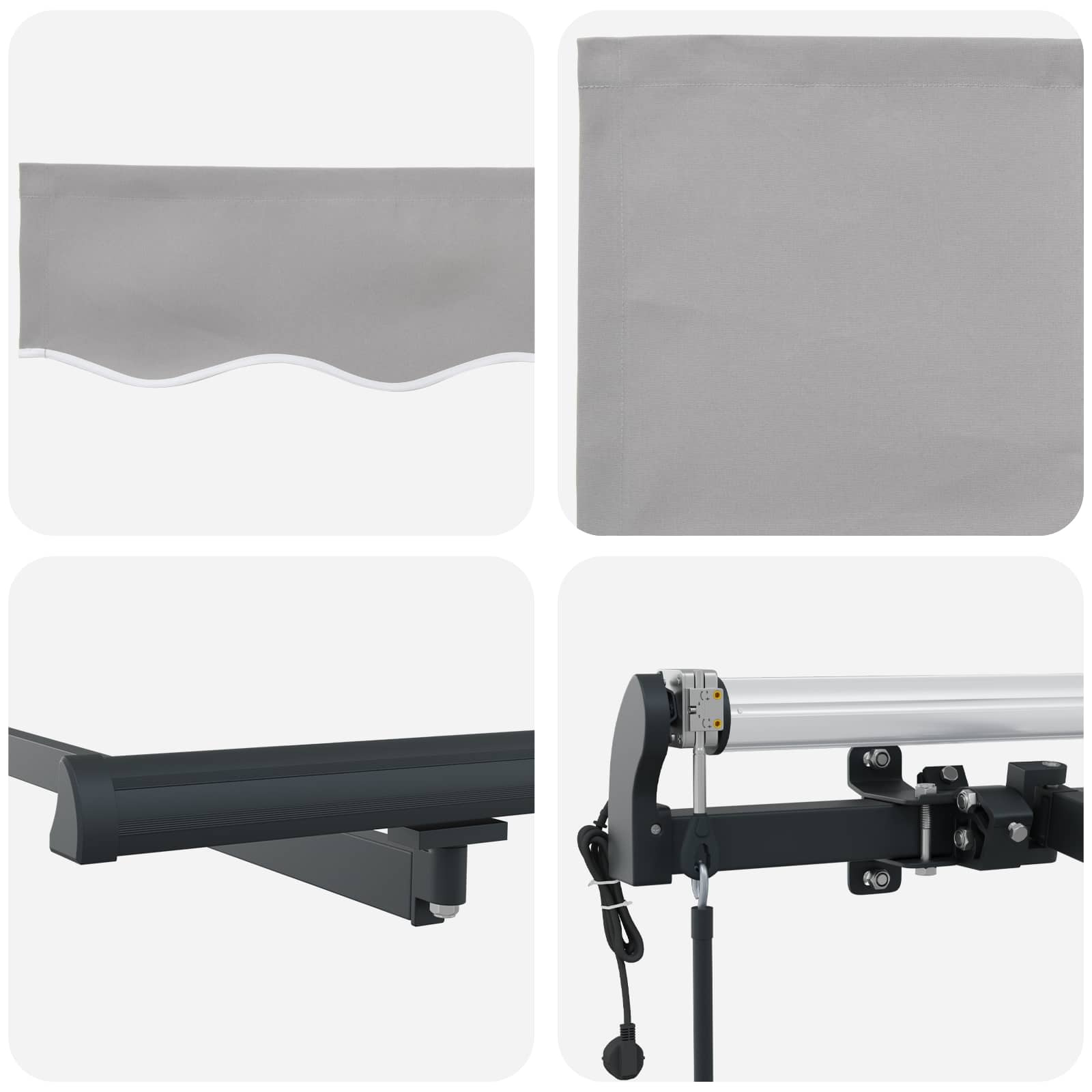 - Compoziția materialului: Făcută din materiale durabile și aluminiu, această marchiză e de încredere și stabilă. Țesătura rezistă la UV, la apă și la decolorare, perfectă pentru utilizarea pe termen lung în aer liber.