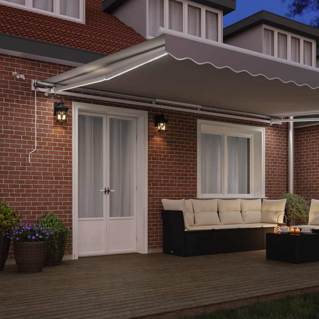 - Componente Incluse: Cu benzi LED, marchiza asta nu oferă doar umbră, ci și lumină. Benzi de LED-uri sunt integrate în design și aduc opțiuni variate de iluminare pentru serile de petrecere.