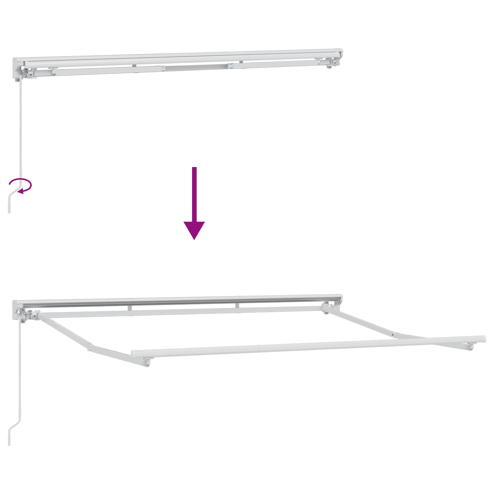- Necesită asamblare: Yes<\li><\ul> Pericol! Arc puternic la deschidere. NU îndepărtați această funie dacă nu ați finalizat toate etapele de asamblare cu toate șuruburile fixate și articolul montat pe perete! Avertisment! Aveți grijă când slăbiți brațele, deoarece acestea sunt sub tensiune! O eliberare bruscă a brațului unei copertine cu braț pliabil poate provoca vătămări. Avertisment : Instrucţiunile operatorului trebuie citite înainte de utilizarea acestui produs. Avertisment: Acționarea în condiții de îngheț poate deteriora produsul. Utilizare externă la clădiri și alte lucrări de construcție.