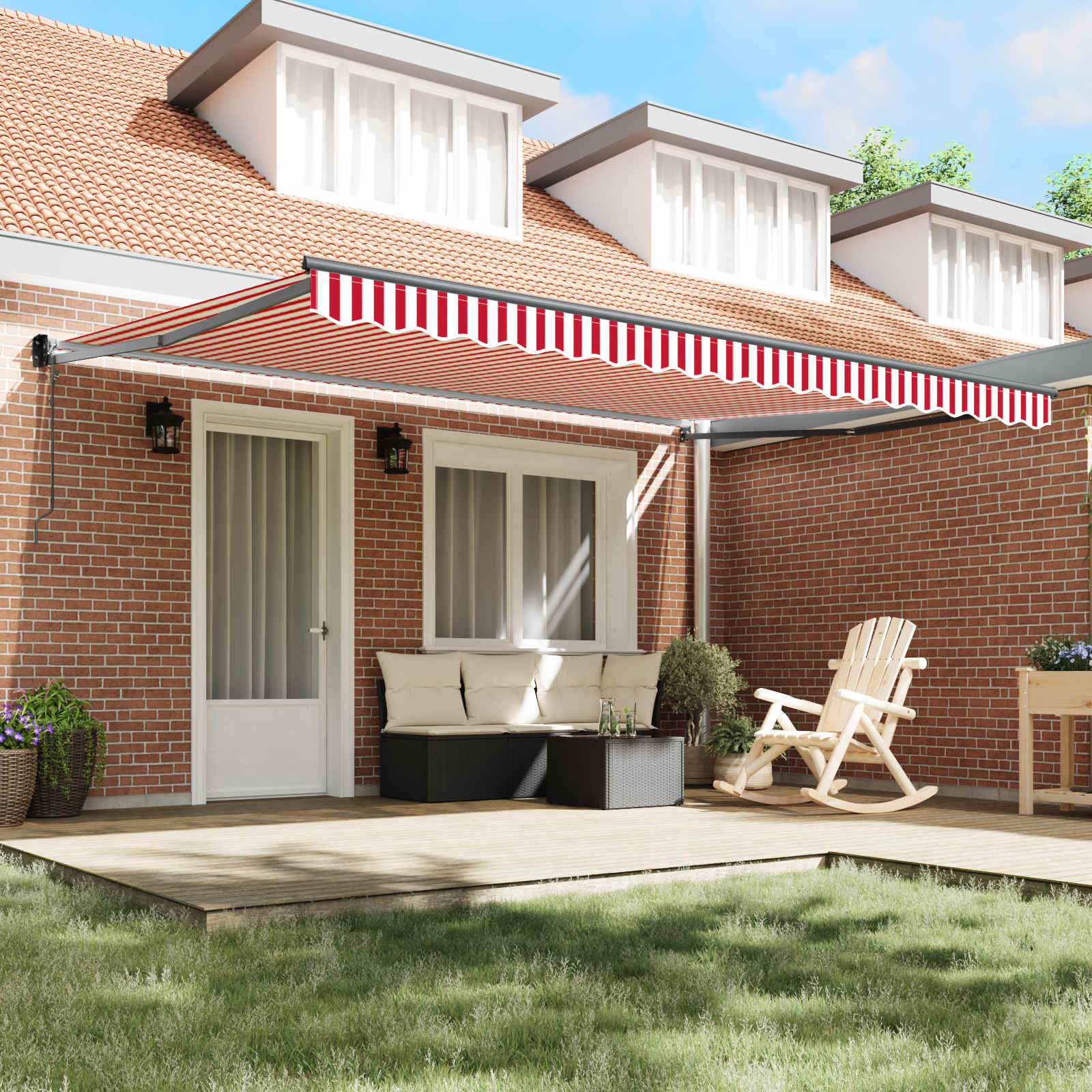 - Utilizări recomandate: Ideală pentru terase și deckuri, marchiza e perfectă pentru a crea un spațiu primitor. Oferă umbră esențială în zilele însorite, având în același timp un look chic în peisajul tău de grădină.