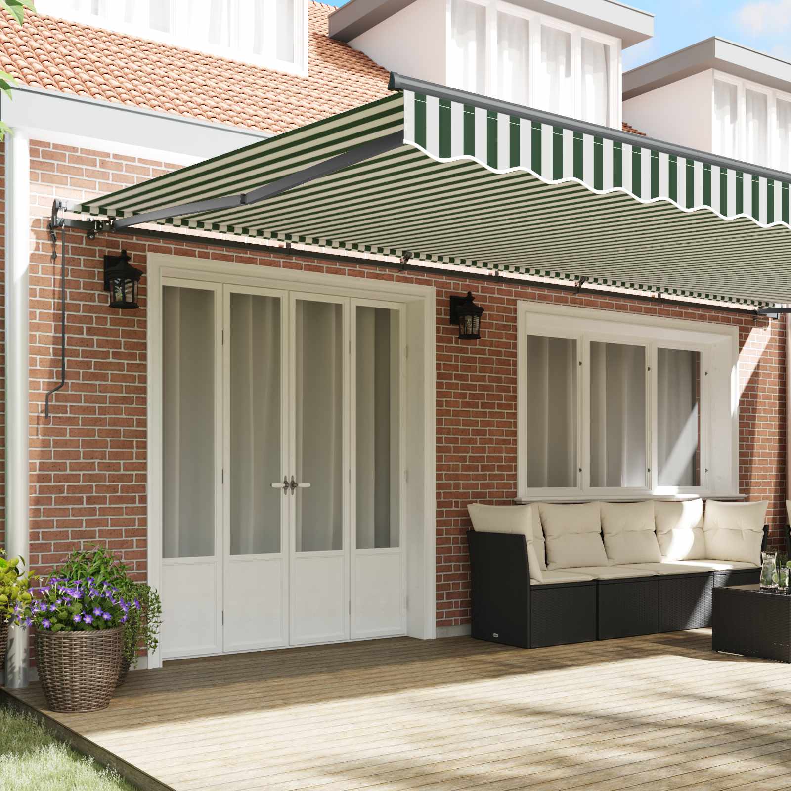 - Utilizare sezonieră: Ideală pentru vară, această marchiză retractabilă îți face zilele însorite mai plăcute, oferind un refugiu răcoritor de razele dăunătoare. Se integrează perfect în orice grădină sau terasă pe timpul verii.