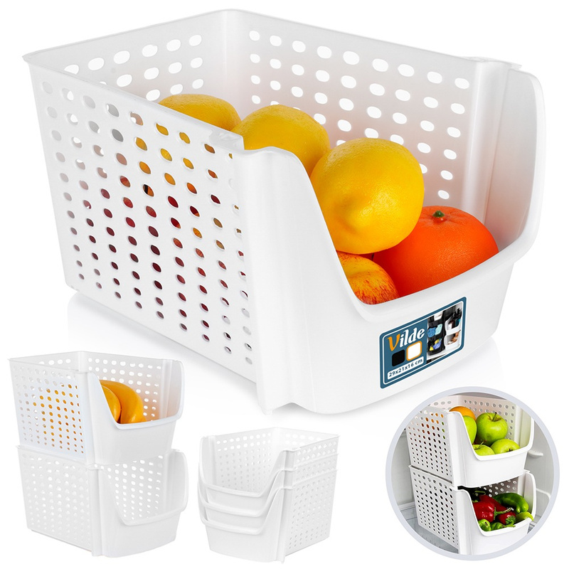 Este potrivit atât pe blat, în dulap sau în cămară, cât și pentru organizarea altor produse (conserve, plicuri, sticle de sos). Forma permite suprapunerea mai multor coșuri pentru economie de spațiu.