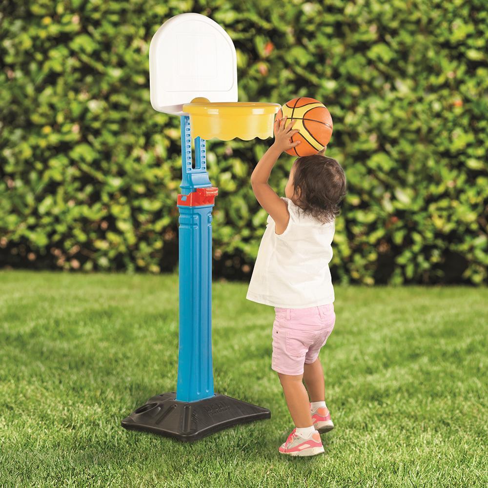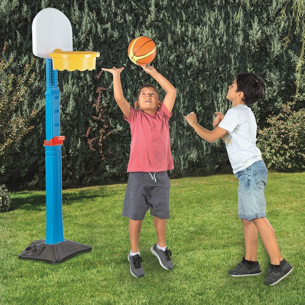 Datorita structurii rezistente si designului practic, produsul ofera doua moduri de joc: aruncare directa la cos sau aruncare in panou, cu revenirea mingii. In plus, inaltimea poate fi ajustata pentru a se potrivi mai bine varstei si nivelului de dezvoltare al copilului.