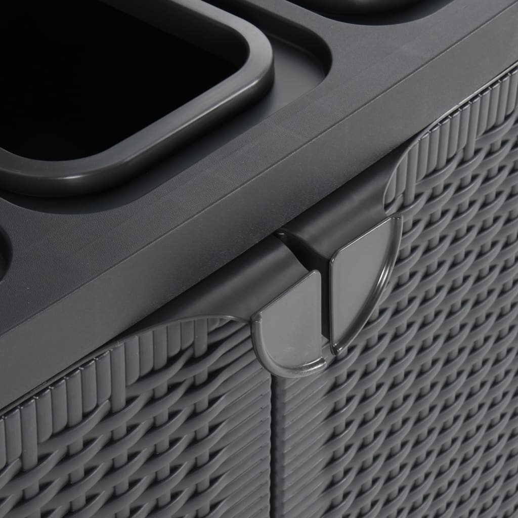 Fabricat din 100% PP (polipropilenă), dulapul ecologic este durabil și ușor de curățat cu o cârpă umedă. Datorită construcției ușoare, este ușor de mutat. În plus, având 3 orificii pentru suporturile de saci, acest recipient de reciclare permite separarea funcțională a deșeurilor.
