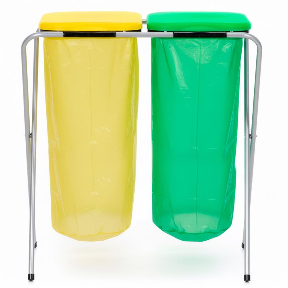 Capacele colorate, verde și galben, facilitează sortarea vizuală, iar clapeta interioară ajută la fixarea sacilor menajeri. Sistemul glisant de montare a capacelor oferă o utilizare comodă, iar piciorușele antialunecare contribuie la o bună stabilitate pe diferite suprafețe.