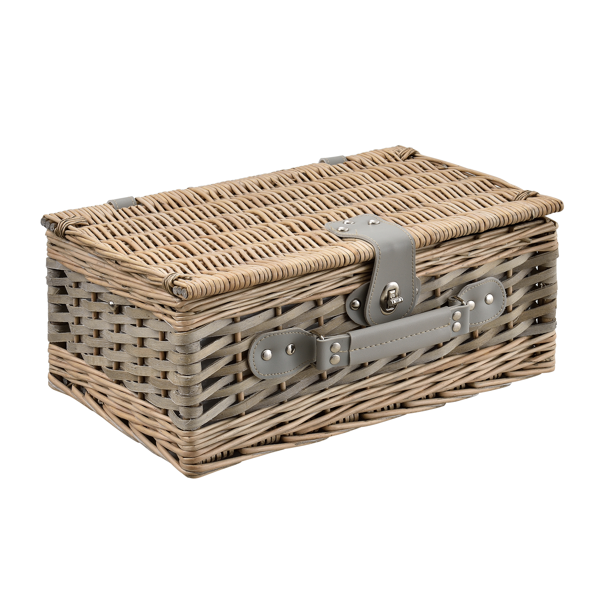 Practic și ușor de transportat, coșul vine echipat cu accesoriile esențiale pentru o masă în doi. Designul său clasic din răchită, completat de căptușeala în dungi alb-albastru, oferă un aspect plăcut și potrivit pentru momente speciale în aer liber.