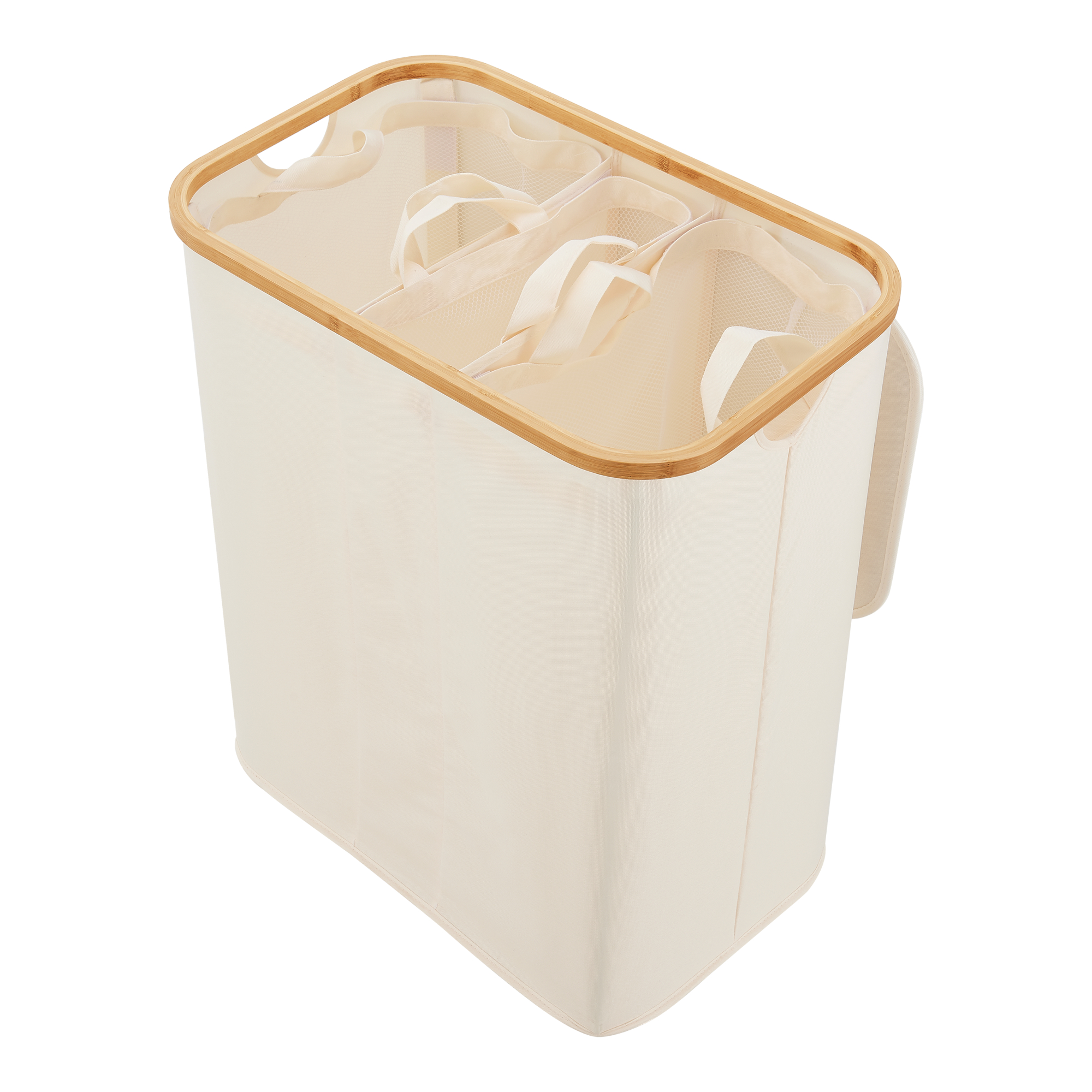 Coș de rufe 140L bej cu 3 compartimente detașabile și capac, Rusko