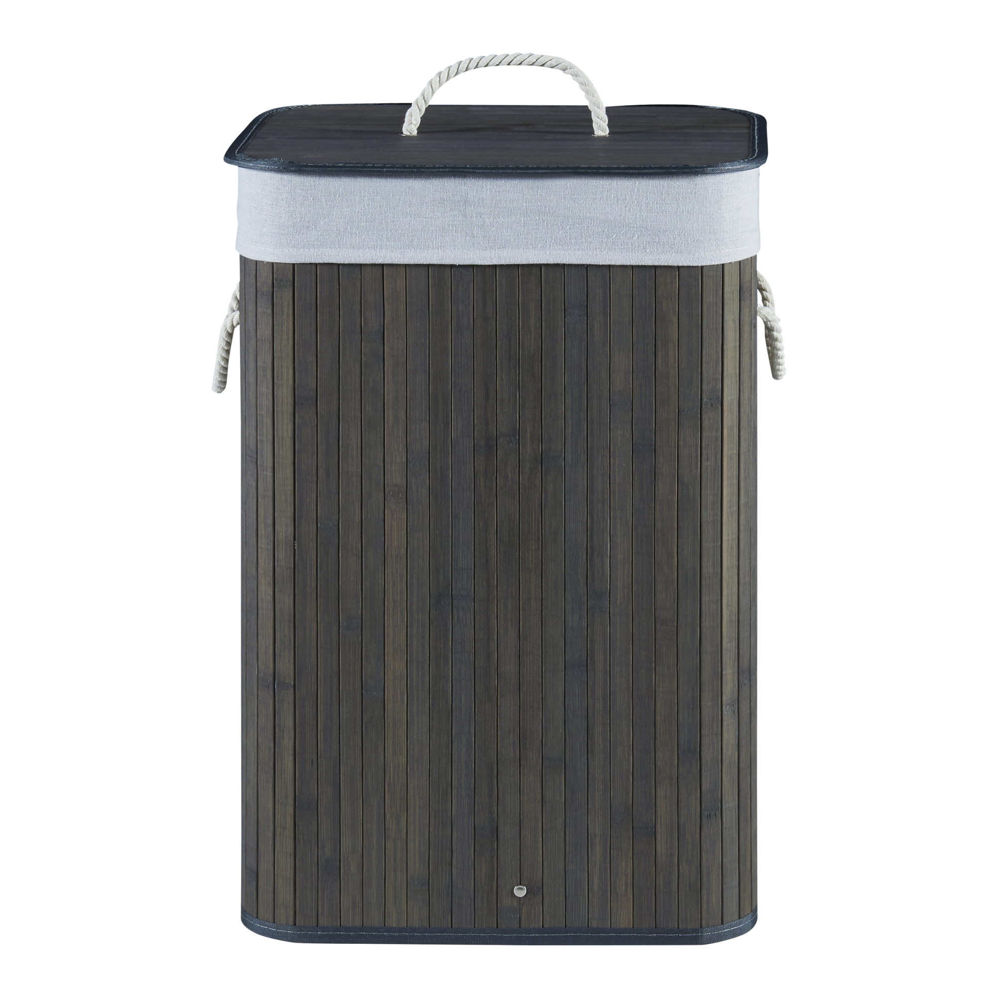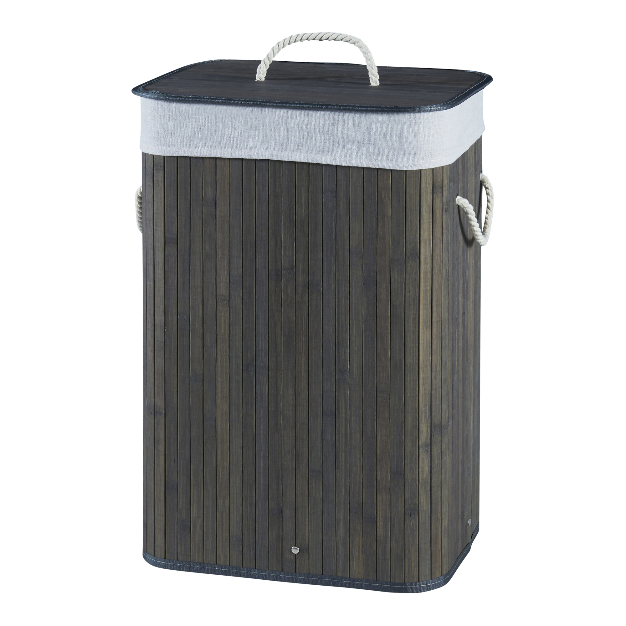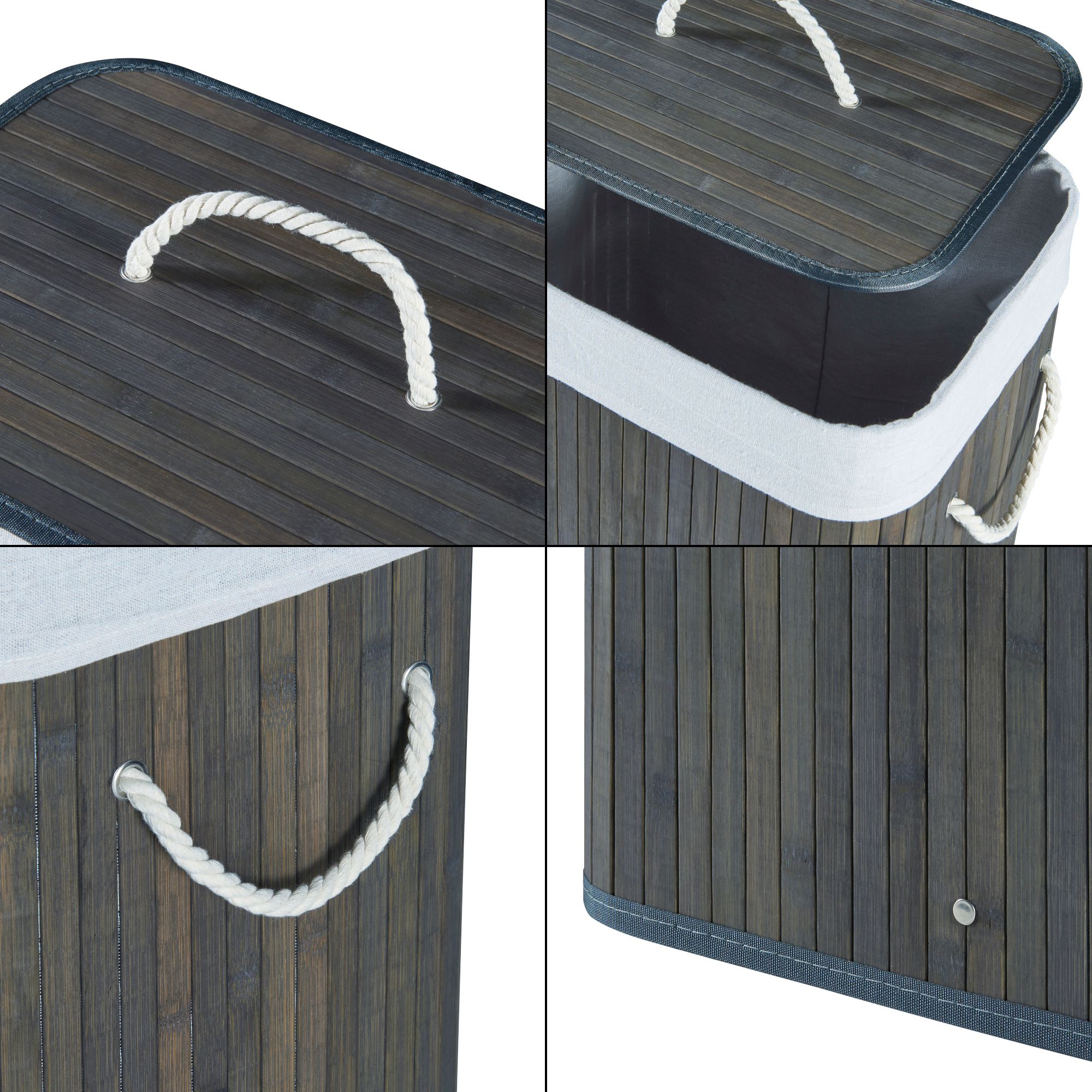 Cos de rufe 72L din bambus cu capac, albastru inchis/gri, Salla