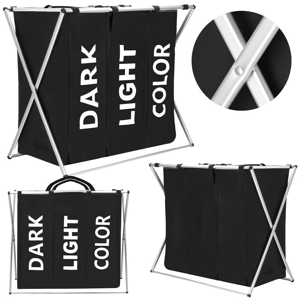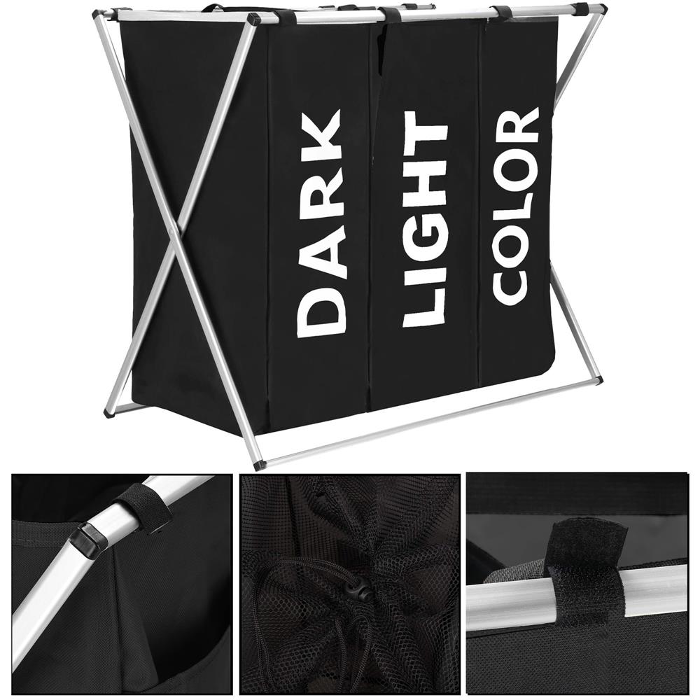 Cos de rufe cu 3 compartimente, pliabil, cadru aluminiu, 146L, negru