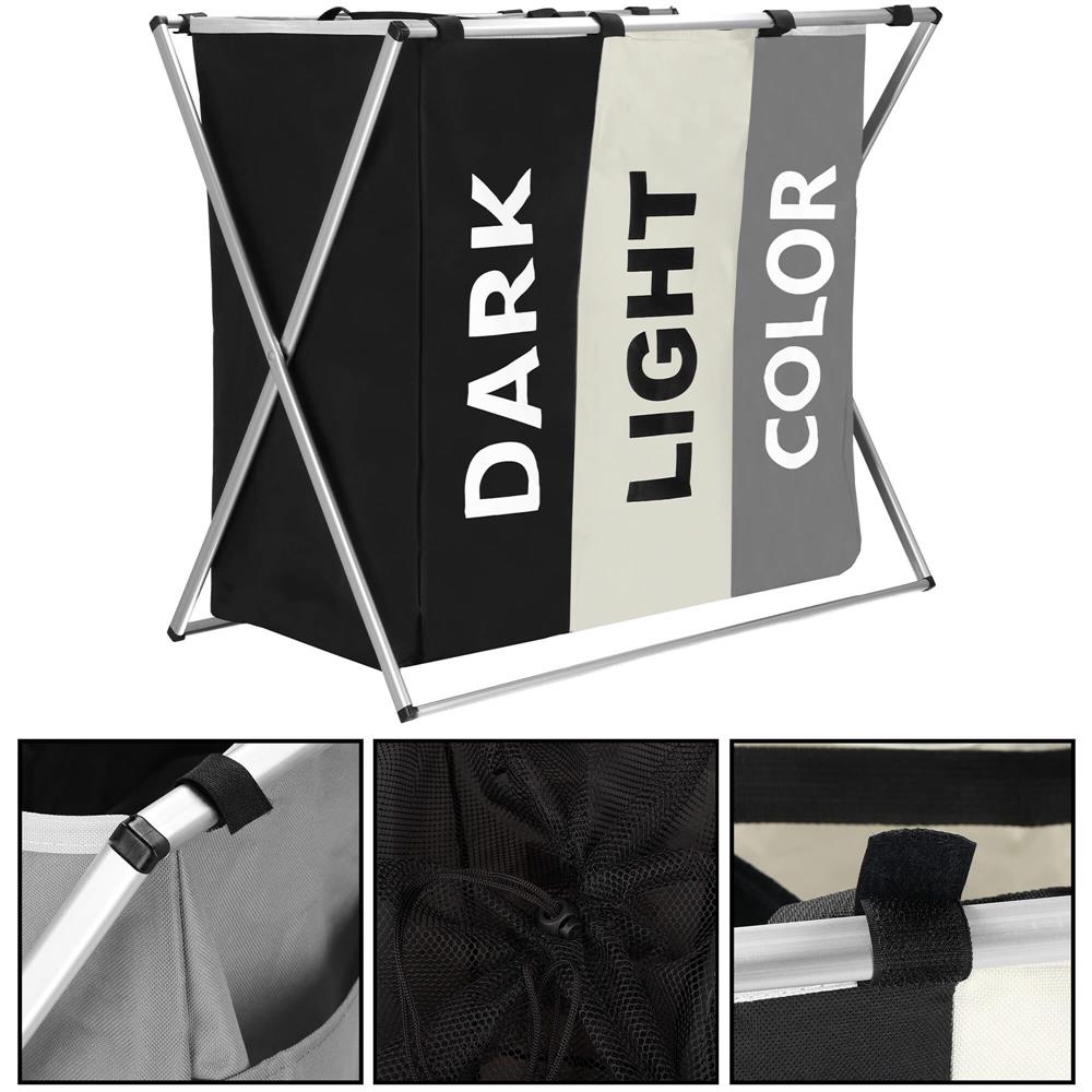 Cos de rufe cu 3 compartimente, pliabil, cadru aluminiu, 146L