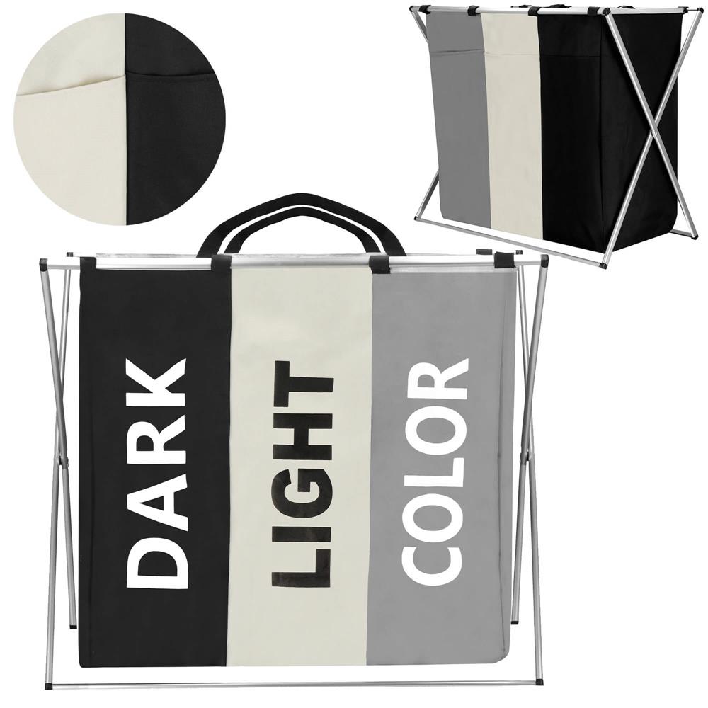 Alege un cos de rufe cu 3 compartimente practic si modern, ideal pentru organizarea eficienta a hainelor deschise, inchise si colorate. Cu un cadru din aluminiu usor, compartimente textile rezistente si o capacitate mare de 146 litri, acest model este perfect pentru baie, spalatorie sau dormitor. Designul pliabil economiseste spatiu atunci cand nu este folosit, iar manerele si sacii detasabili fac transportul rufelor mult mai simplu.