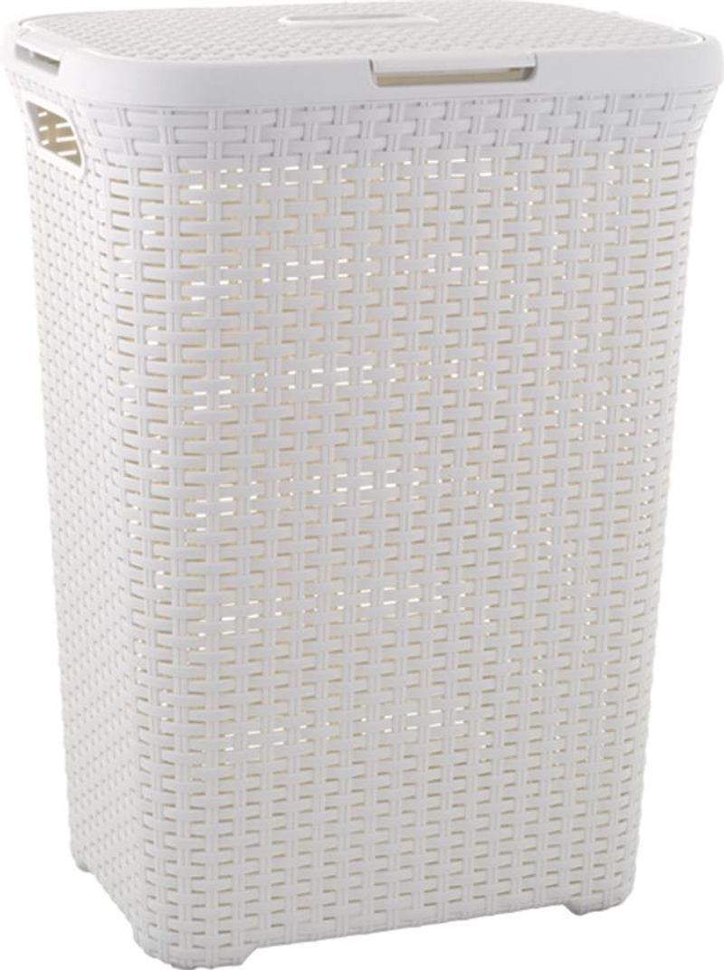 Capacul integrat ascunde discret continutul, iar perforatiile din impletitura permit o circulatie buna a aerului, contribuind la aerisirea rufelor. Datorita manerelor laterale, cosul se muta usor oriunde ai nevoie, fiind potrivit pentru utilizarea zilnica.
