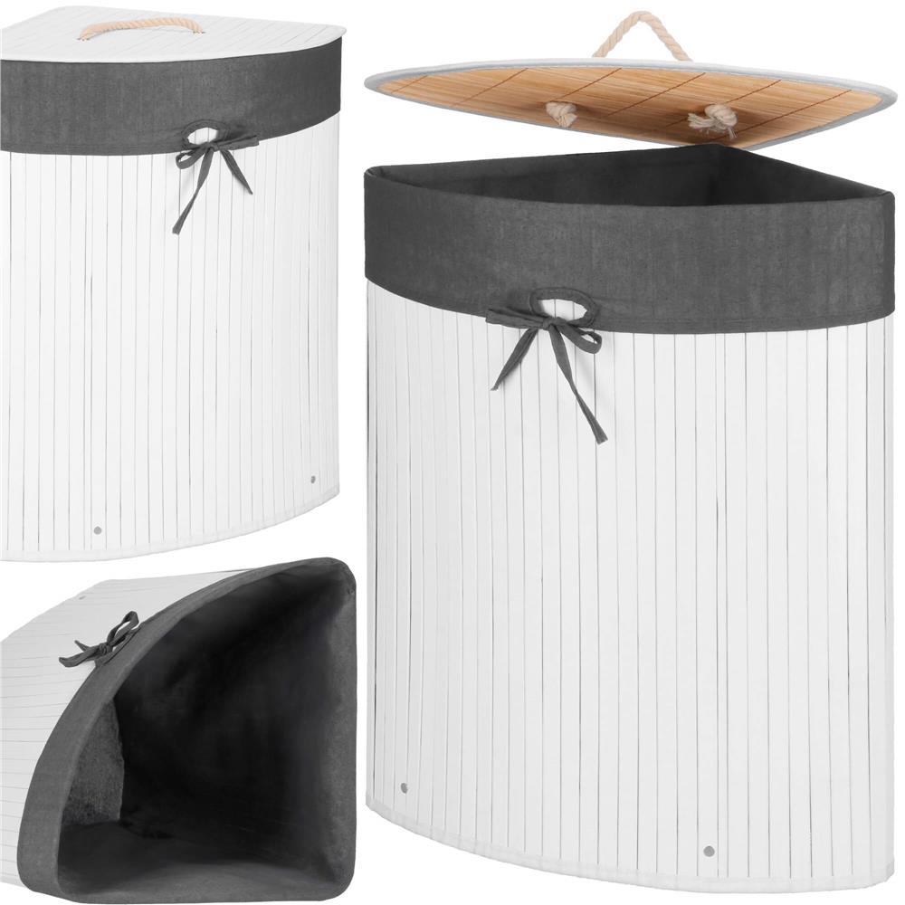 Organizeaza mai eficient baia sau spalatoria cu acest cos de rufe de colt, conceput special pentru a valorifica spatiile greu de folosit. Designul triunghiular se potriveste perfect in colt, iar combinatia dintre bambus, finisajul alb si sacul textil gri ofera un aspect modern, curat si placut in orice incapere.