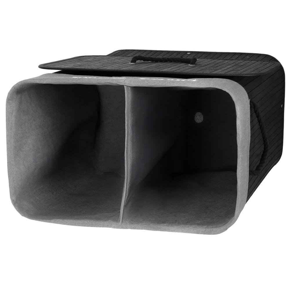 Cos de rufe din bambus cu capac, 2 compartimente, sac detasabil, volum 100L, 54x34x60cm, negru Household NewTrend