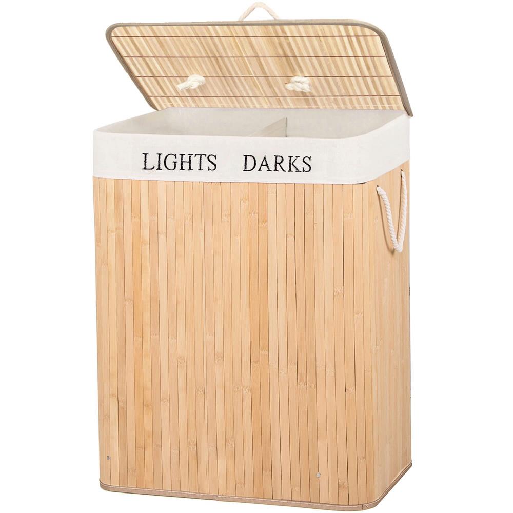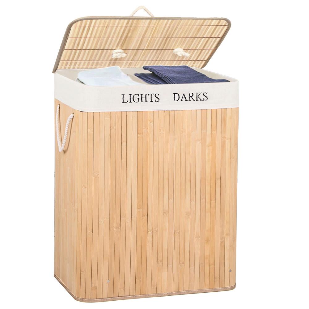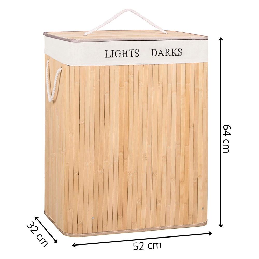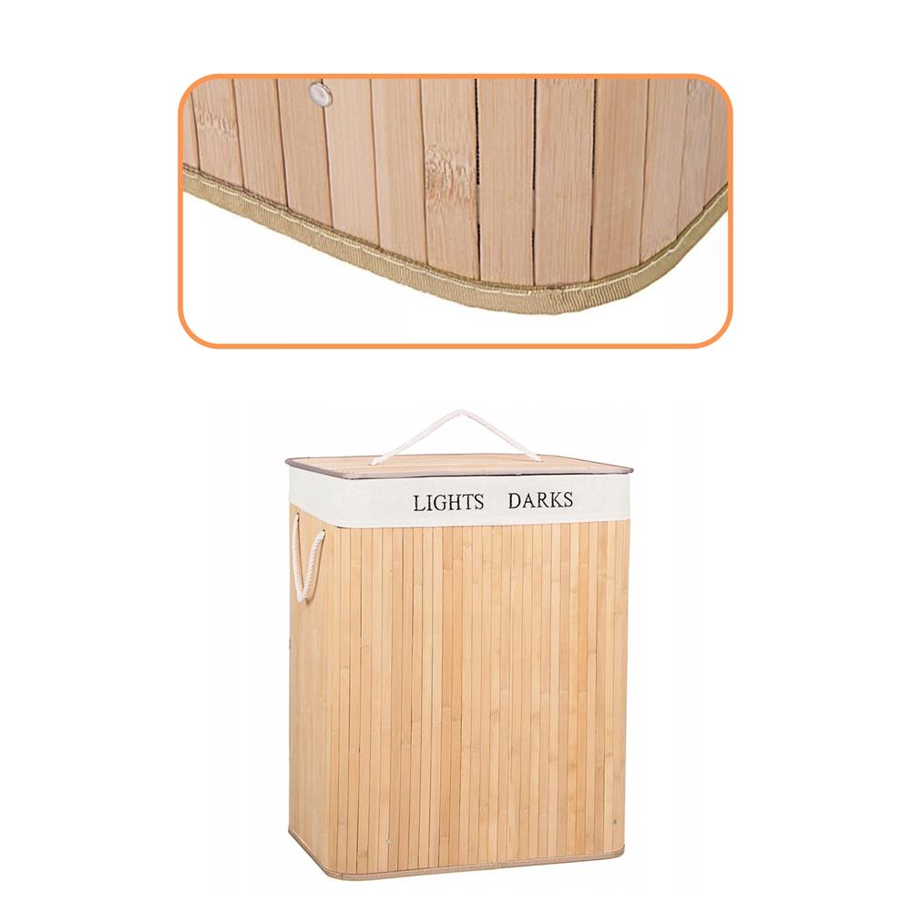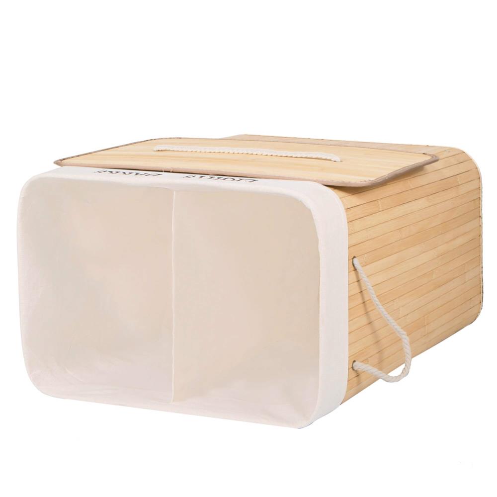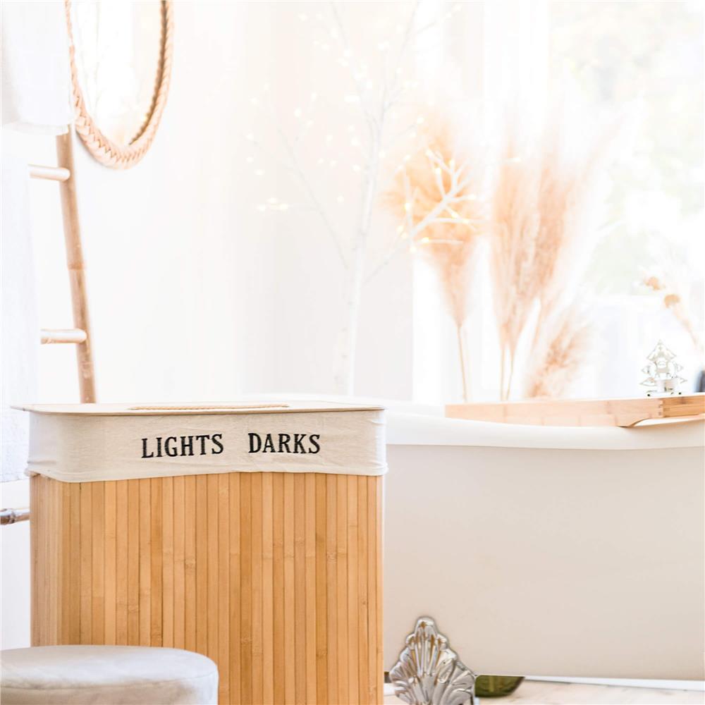 Alege un coș de rufe din bambus practic și elegant, perfect pentru baie, dormitor sau spălătorie. Acest coș de rufe cu capac te ajută să păstrezi hainele murdare bine organizate și ferite de vedere, iar cele 2 compartimente sunt ideale pentru separarea rufelor deschise la culoare de cele închise. Designul în nuanță de bambus natural adaugă un aspect cald și ordonat în orice încăpere.