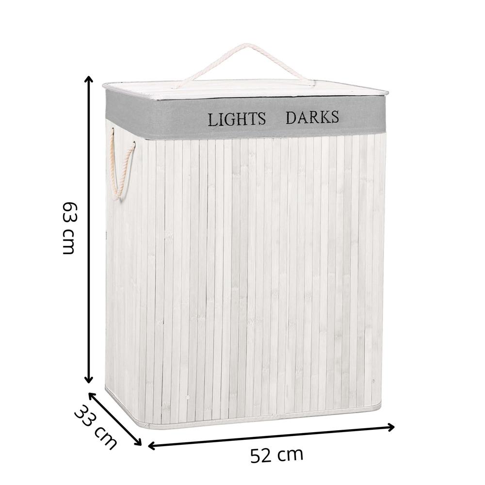 Cos de rufe din bambus pliabil, cu 2 compartimente, 105 L, alb gri