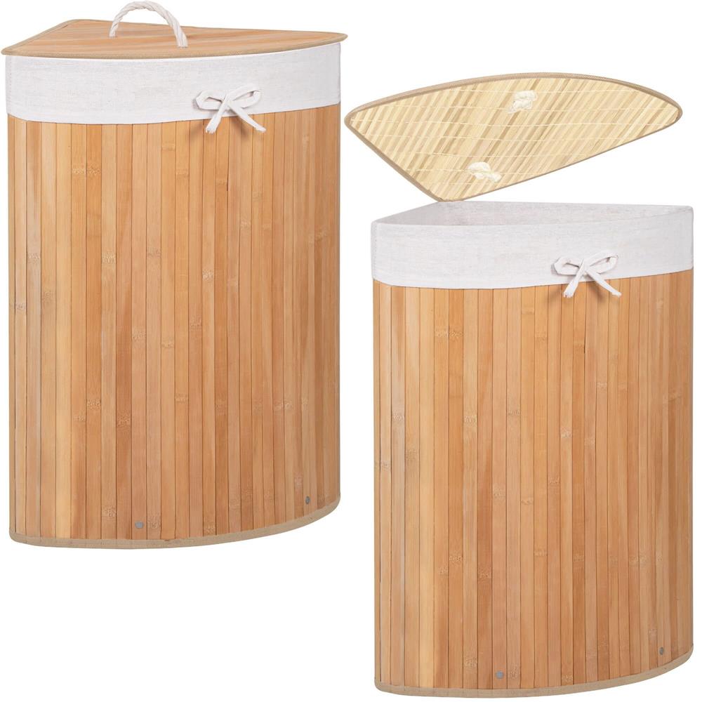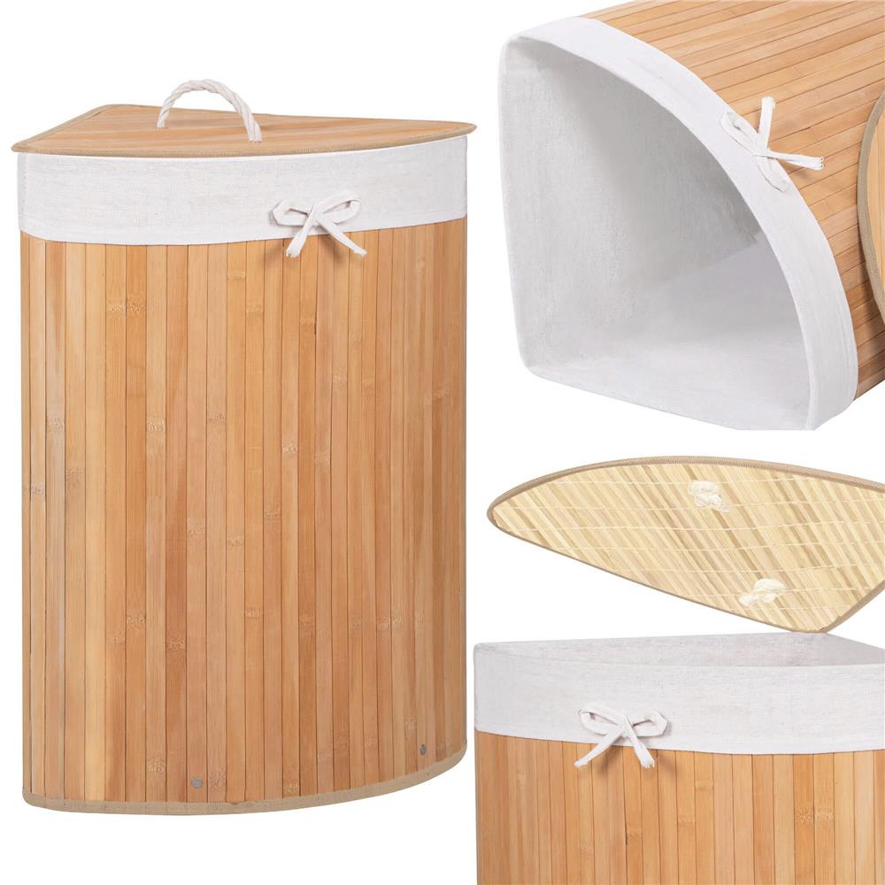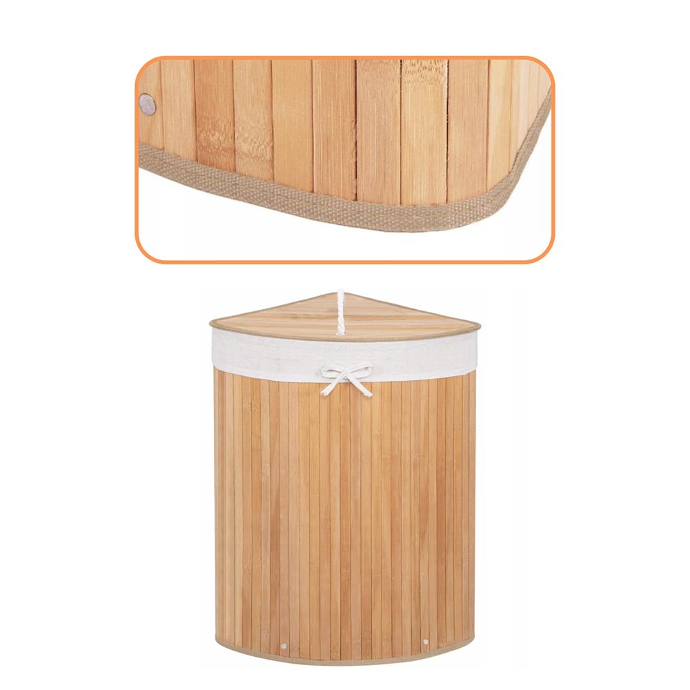 Cos de rufe pentru colt din bambus, cu capac si sac detasabil, 60L
