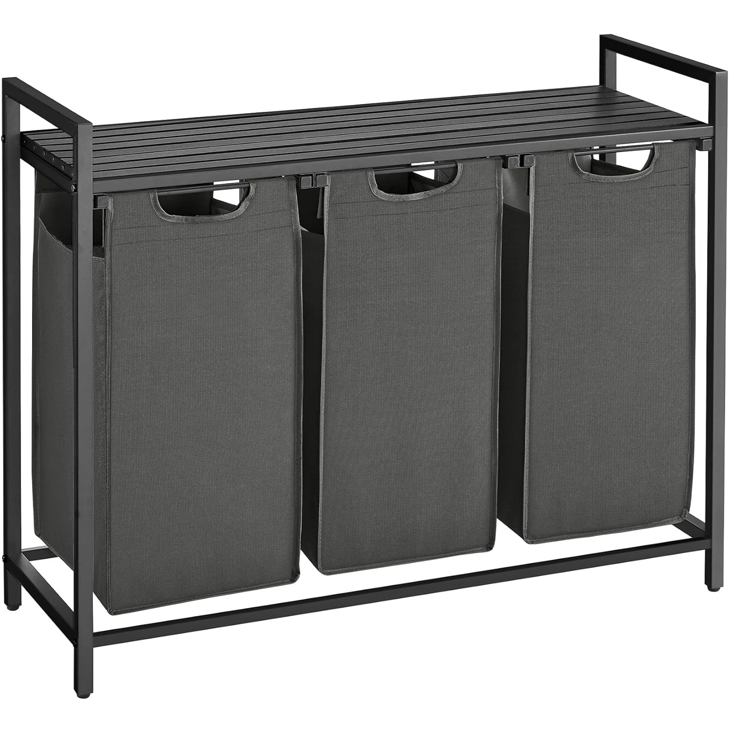 Descriere Coș rufe VASAGLE 3 compartimente, raft