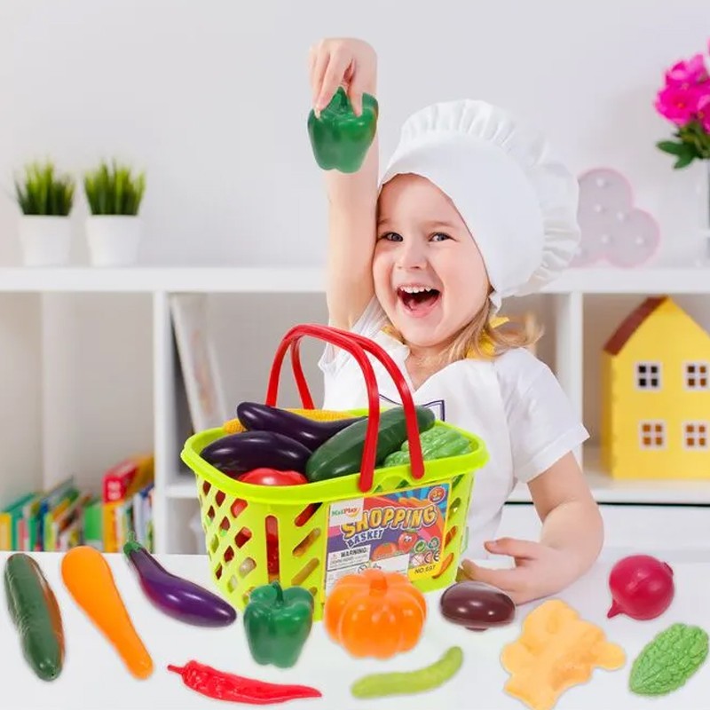 Cos depozitare cu 20 legume multicolor, jucarie plastic, varsta 3 ani+ MultiMark GlobalProd