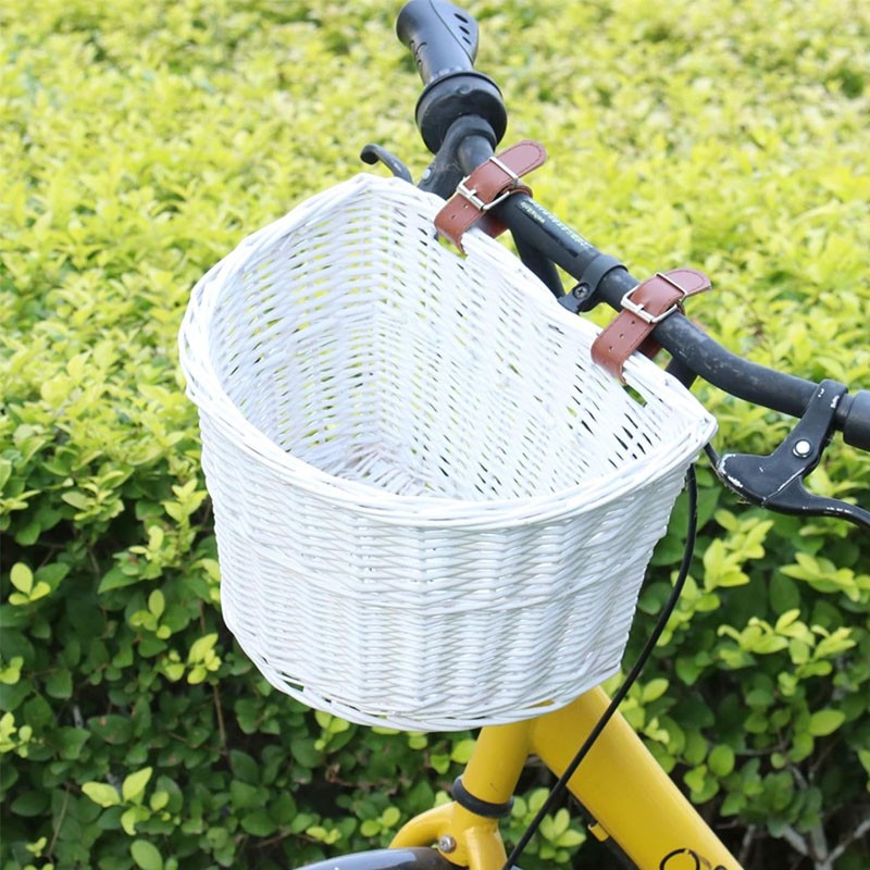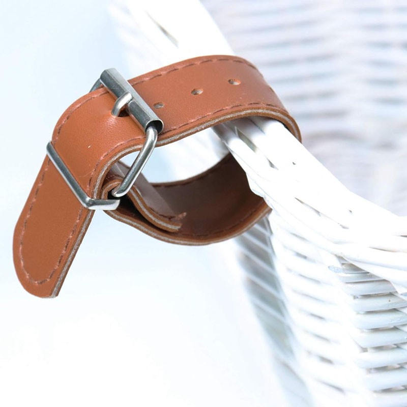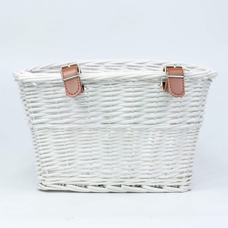 Coș frontal detașabil pentru bicicletă din ratan alb, cu curele, 21x36x24 cm