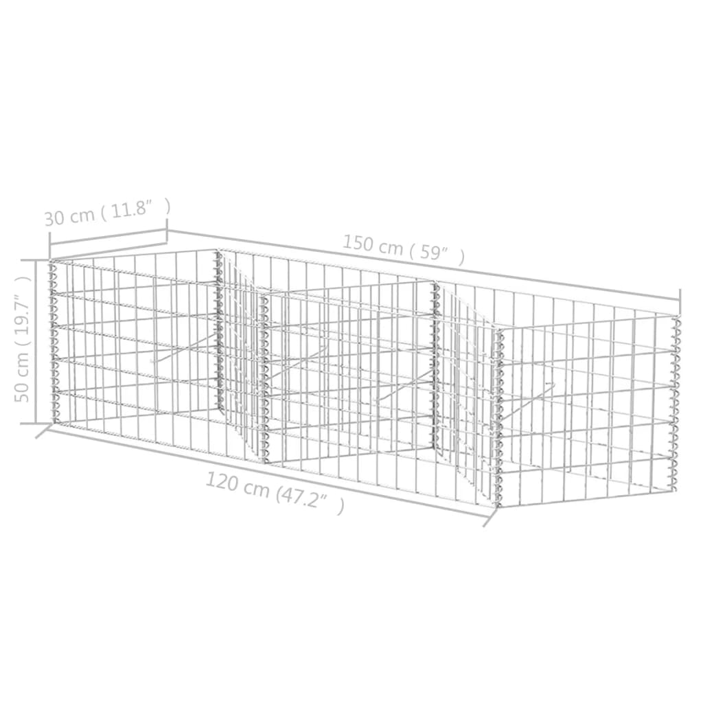 Acest coș gabion stabil și durabil este fabricat din oțel galvanizat, rezistent la rugină și la intemperii. Grilajul din plasă este format prin sudarea în puncte a firelor transversale și longitudinale, la fiecare îmbinare. Gabionul este foarte robust datorită diametrului sârmei de 3,5 mm. Gabionul a fost proiectat pentru a fi umplut cu pietre sau pietriș, pentru a construi rapid și ușor o barieră impresionantă și atractivă pentru grădină.