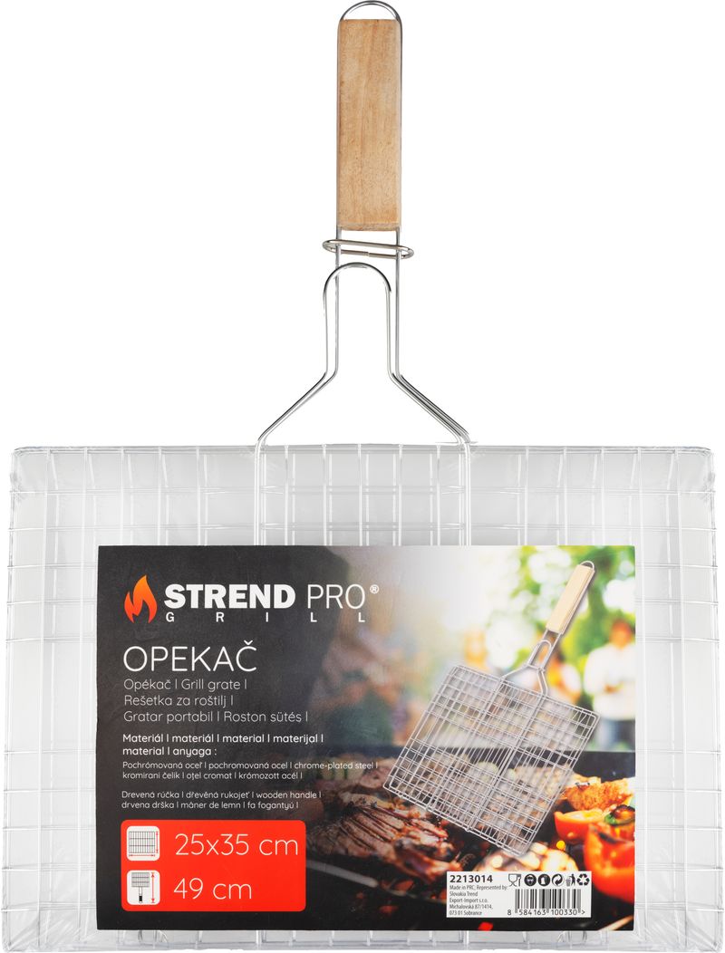 Cosul grill pentru carne Strend Pro este un ajutor practic pentru prepararea alimentelor pe gratar sau la foc deschis. Constructia metalica rezistenta si plasa deasa permit gatirea usoara a carnii, pestelui sau legumelor, fara riscul ca alimentele sa cada printre gratare. Manerul din lemn ofera o prindere confortabila si mai sigura chiar si in timpul utilizarii la temperaturi ridicate.