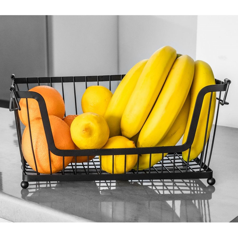 Coș metalic suprapus pentru fructe și legume, negru, 31×17,5×15,5 cm