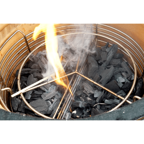 Cu coșul pentru cărbuni realizat din oțel inoxidabil fluxul de aer în grătar este îmbunătățit în mod semnificativ. Cenușa rezultată cade printre bare, împiedicând înfundarea, permițând astfel circulația aerului de jos. Coșul pentru cărbuni poate fi manipulat cu ajutorul mânerelor. Astfel, cenușa poate fi scuturată și coșul reumplut cu cărbune. Foarte util mai ales atunci când se dorește gătirea la temperaturi mari, peste 200 grade Celsius. Datorită divizorului se poate folosi pentru gătirea directă și indirectă în același timp. Caracteristici:- Se potrivește pentru grătarele ceramice CLASSIC Monolith