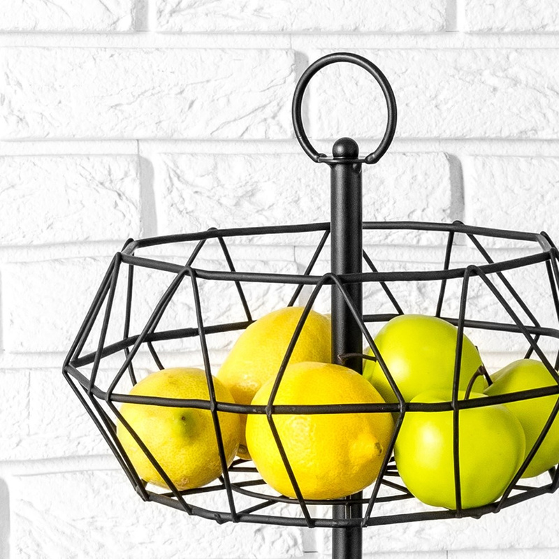 Păstrează blatul ordonat cu acest coș pentru fructe pe 2 nivele, realizat din metal și finisat elegant în negru. Designul geometric arată grozav în bucătării moderne, industriale sau loft și îți oferă mai mult spațiu de depozitare fără să ocupe loc în plus.