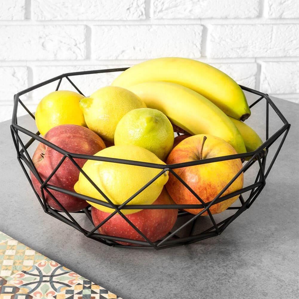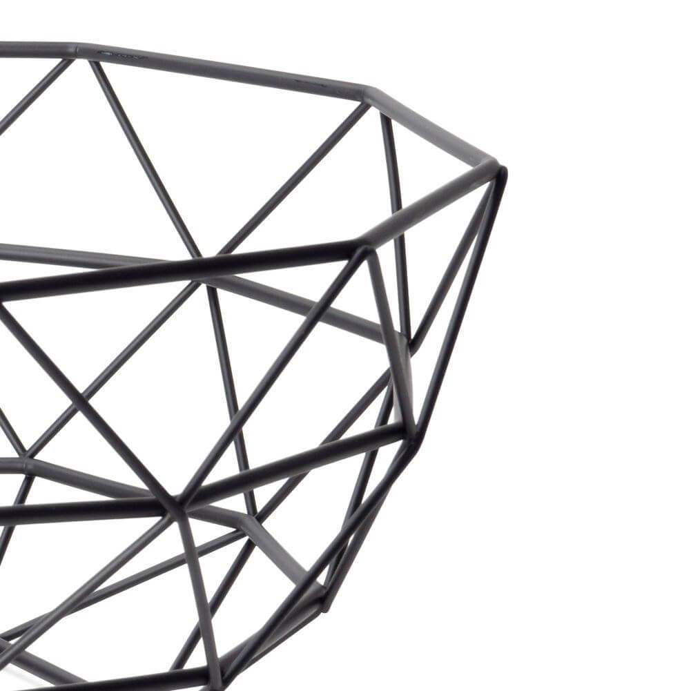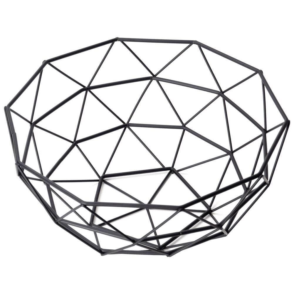 Coș pentru fructe și legume din metal negru mat, design geometric, 28 cm