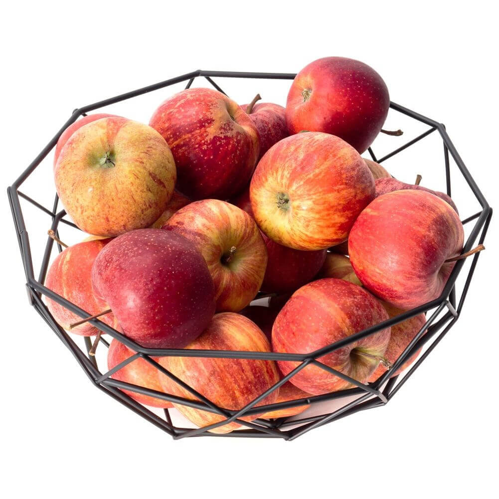 Utilizare: așază coșul pe masă, blat sau insulă și organizează fructele/legumele astfel încât să fie aerisite. Se curăță simplu cu o lavetă ușor umedă.