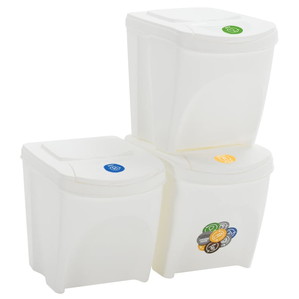 Coșuri de gunoi stivuibile 3 buc. alb 75 L polipropilenă GartenMobel Dekor