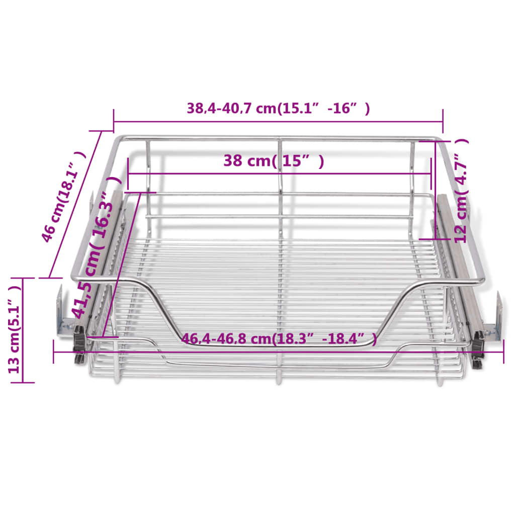 - Dimensiuni coș de sârmă: (384-407) x 460 x 130 mm (l x ad. x î)