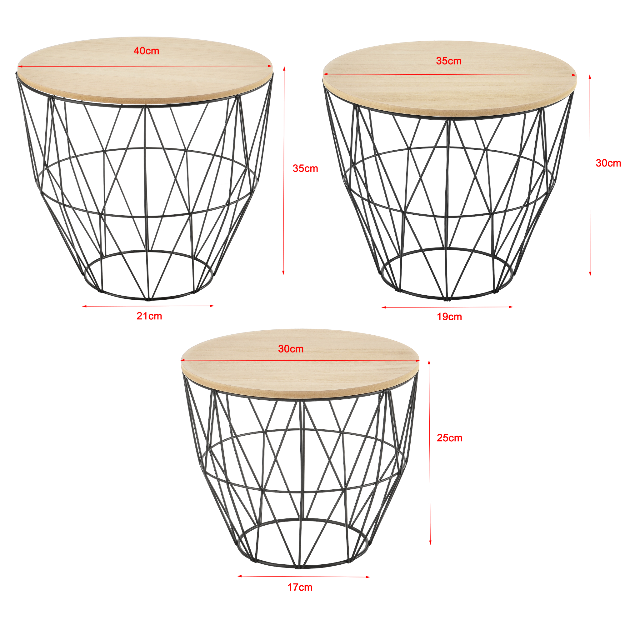 Set masute cafea cosuri metalice Padua, 3 bucati marimi diferite