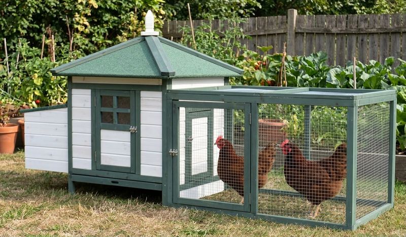 - Beneficiu principal: combină adăpostul închis cu țarc exterior spațios