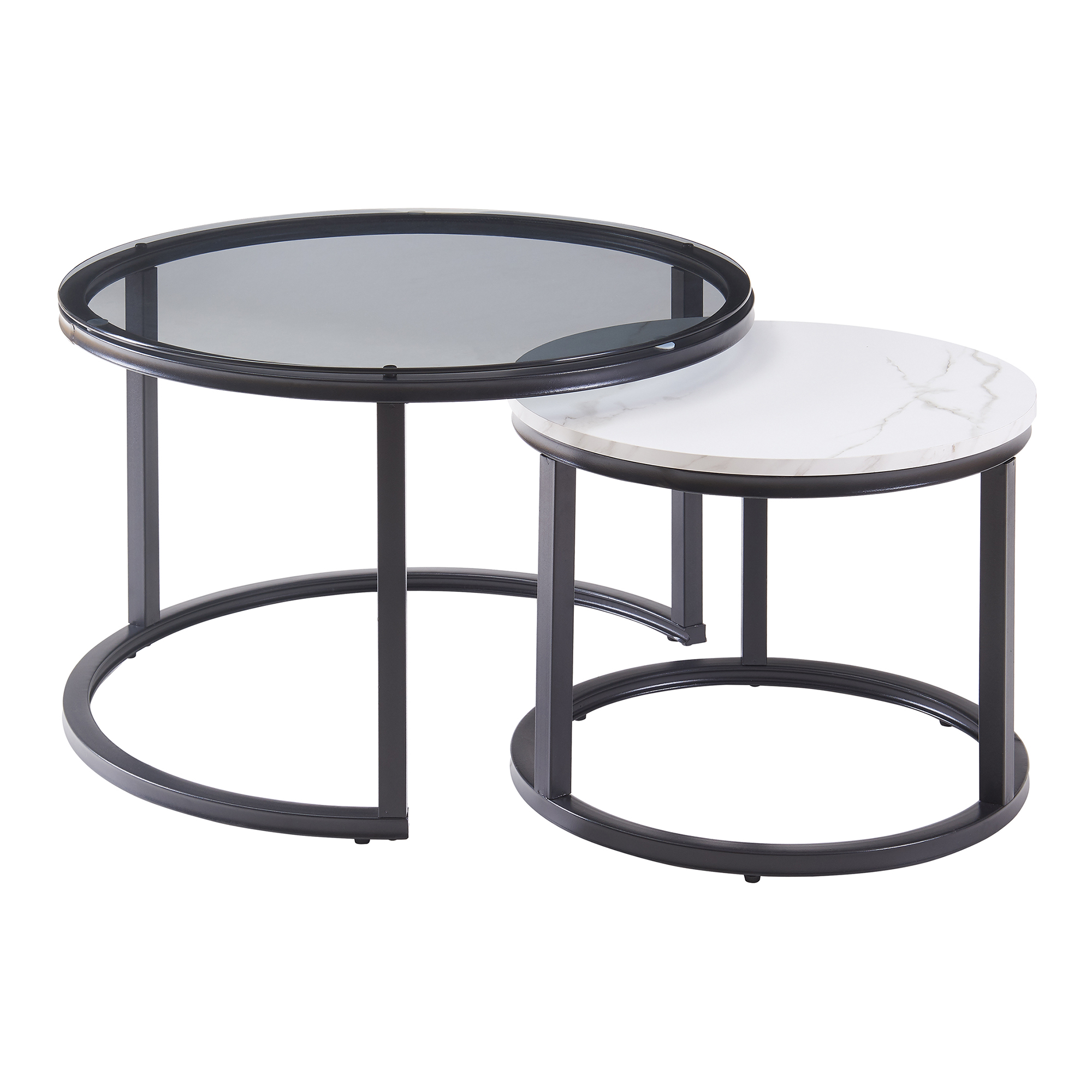 Descriere Couchtisch 2er Set Kokkola Rauchglas/Marmoroptik, weiß