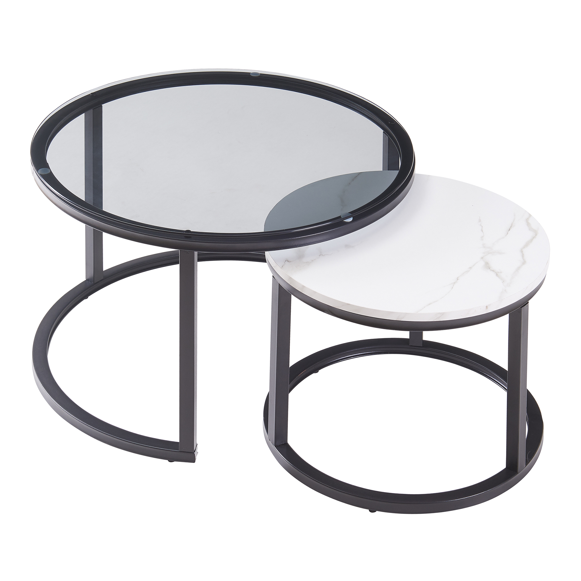 Couchtisch 2er Set Kokkola Rauchglas/Marmoroptik, weiß [en.casa]