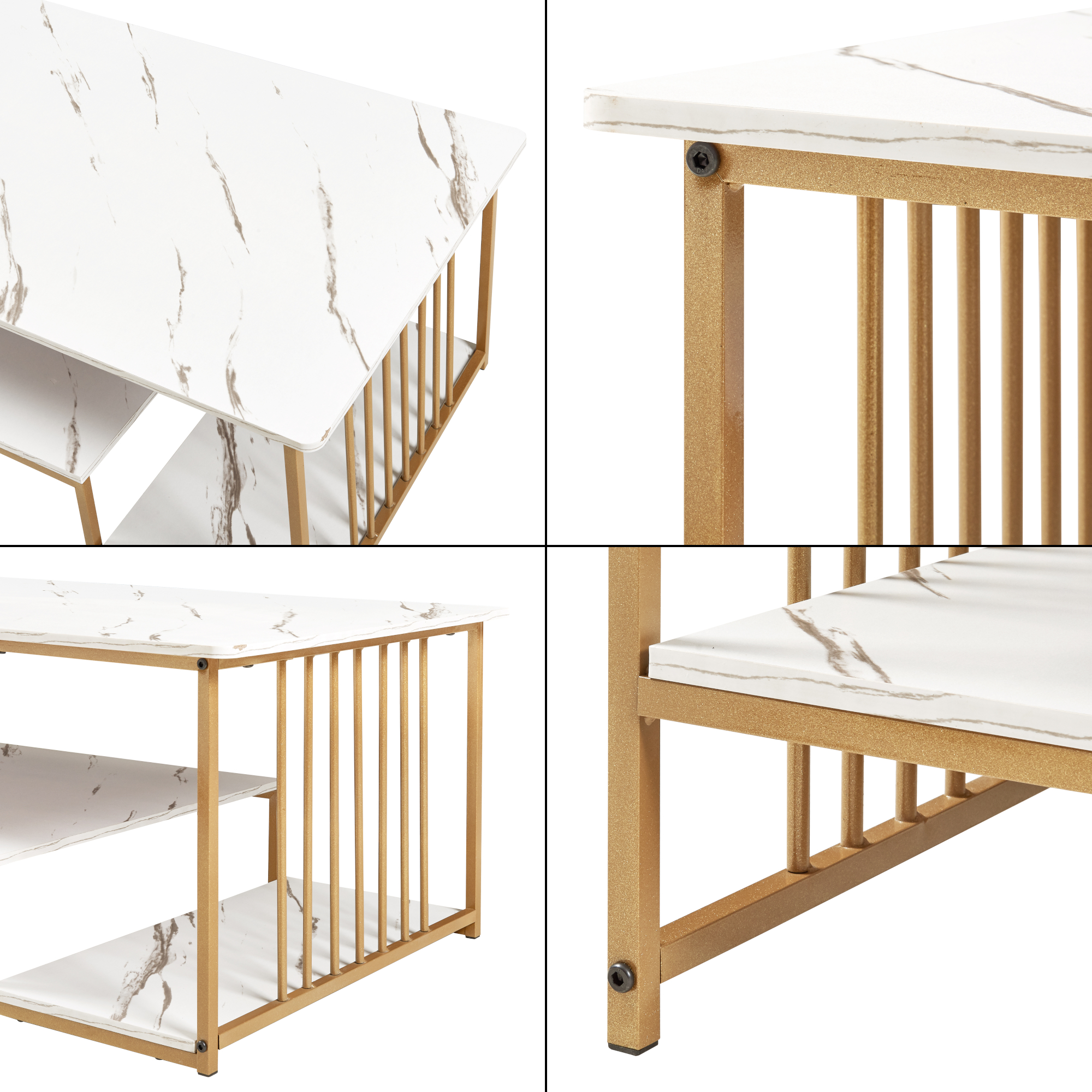 Couchtisch Klibro 120x60x42 cm Marmoroptik, weiß/Goldfarben [en.casa]