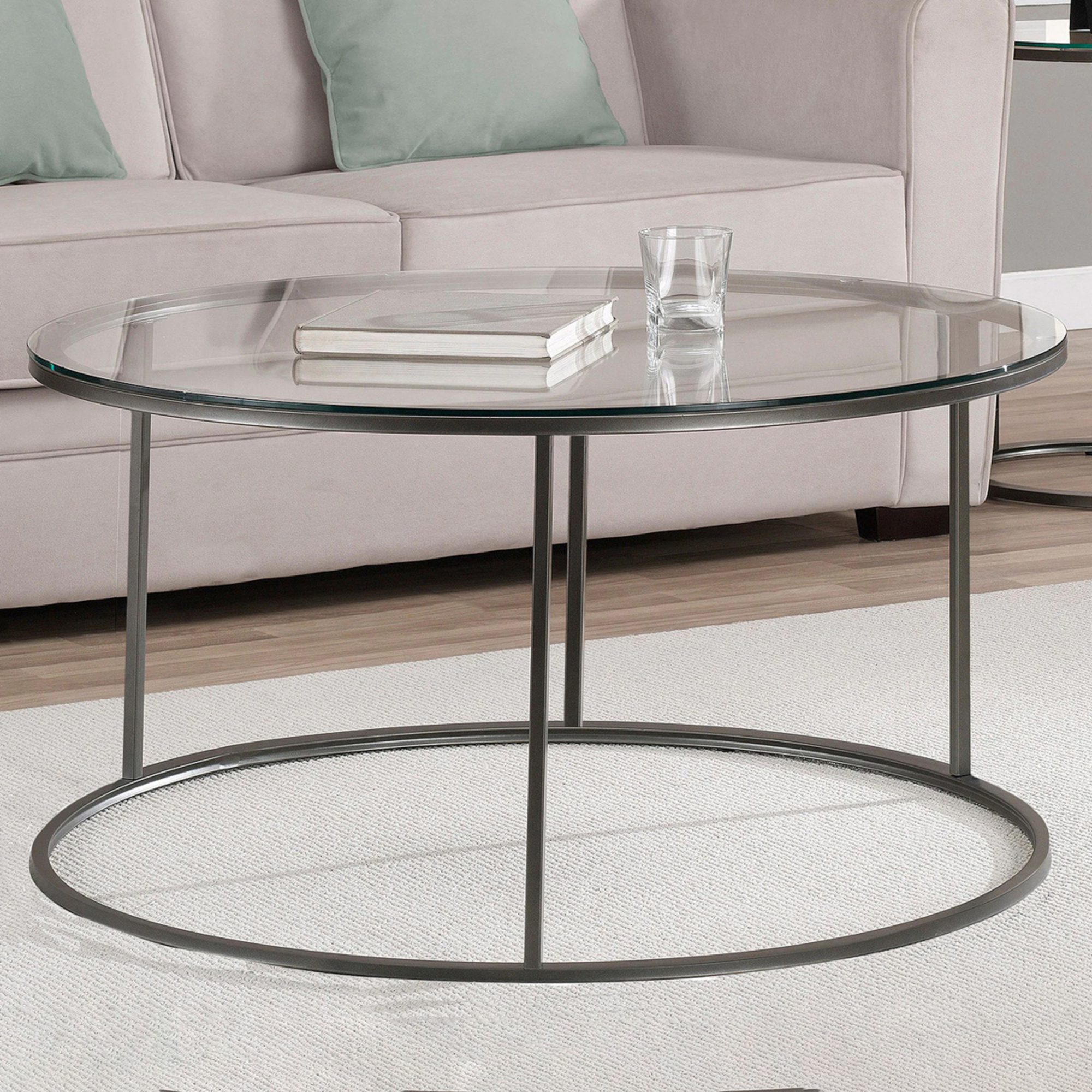 Couchtisch Kolari aus Klarglas 45 x Ø80 cm Schwarz/Transparent [en.casa]