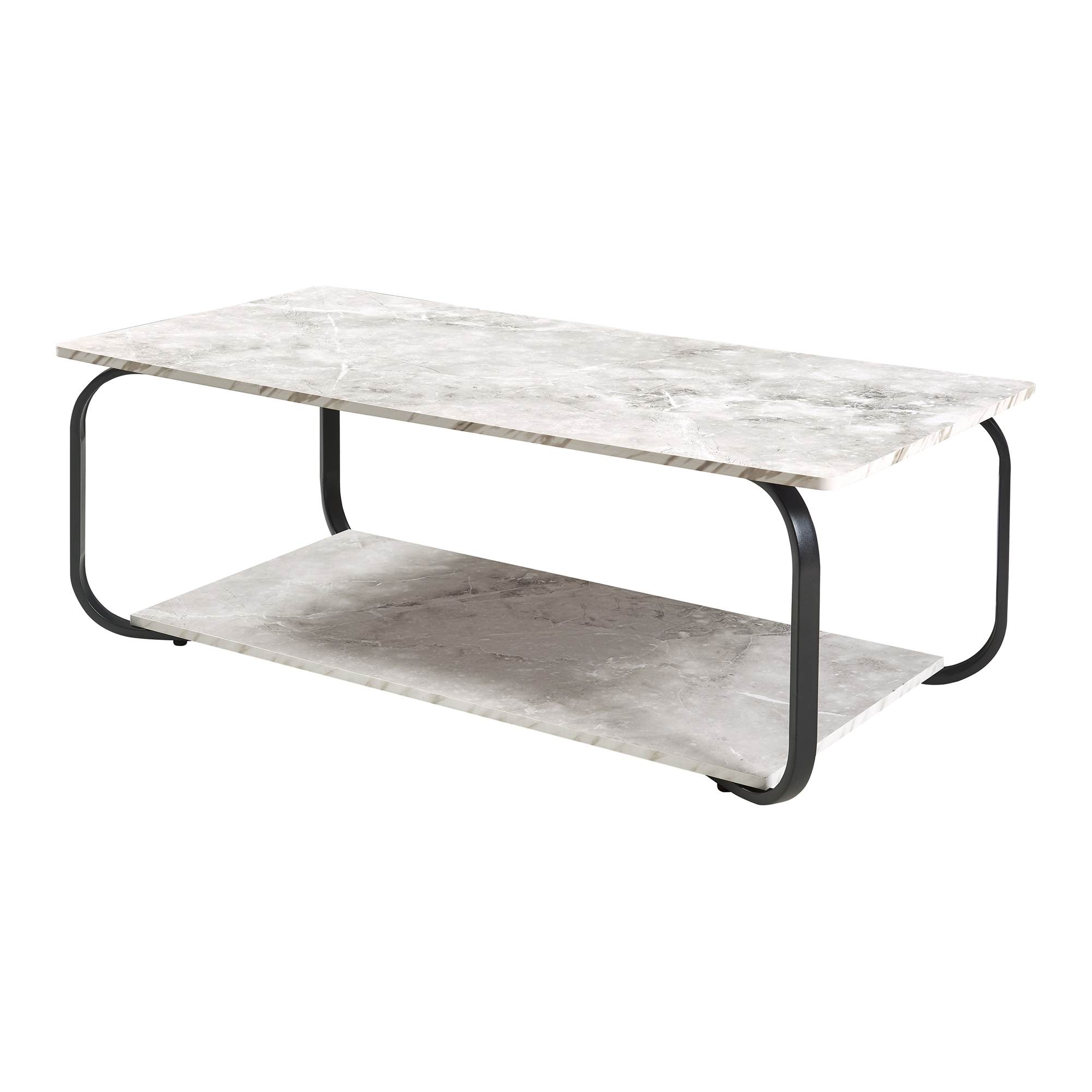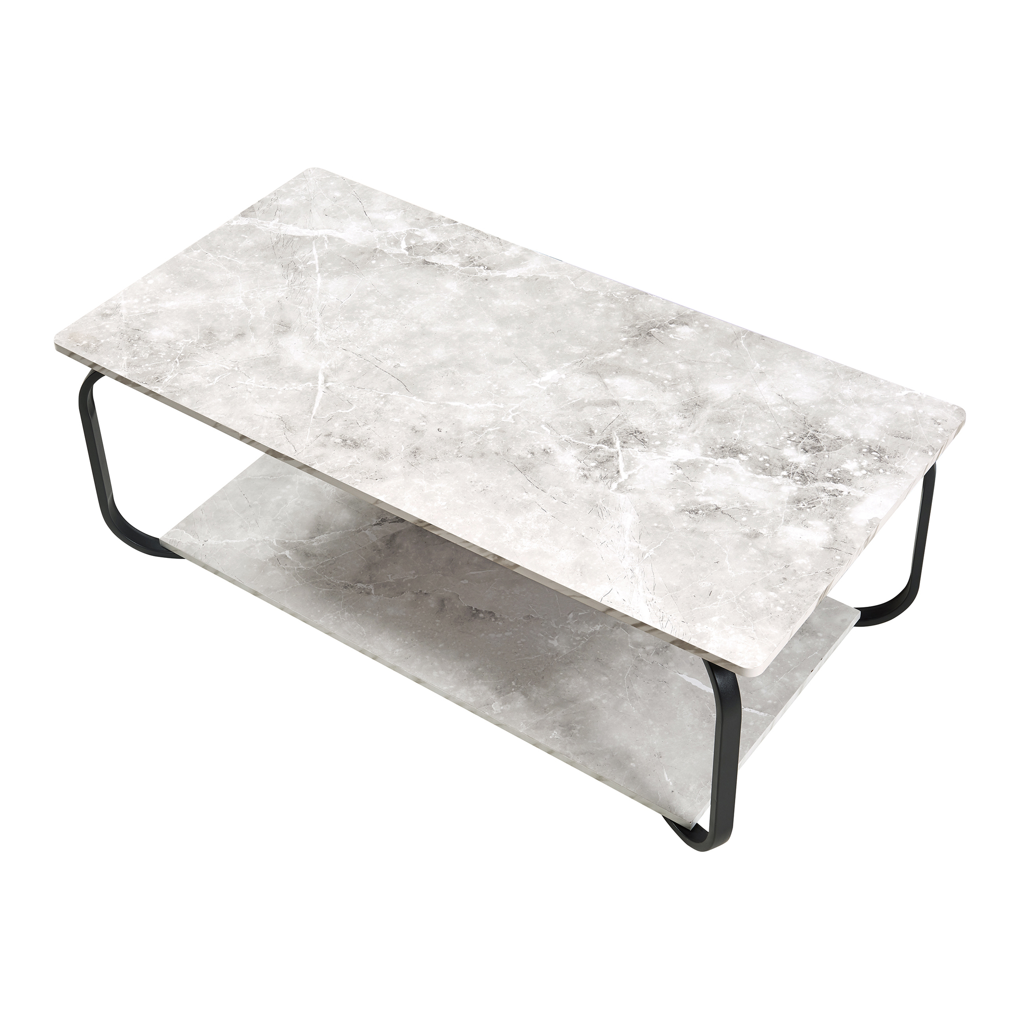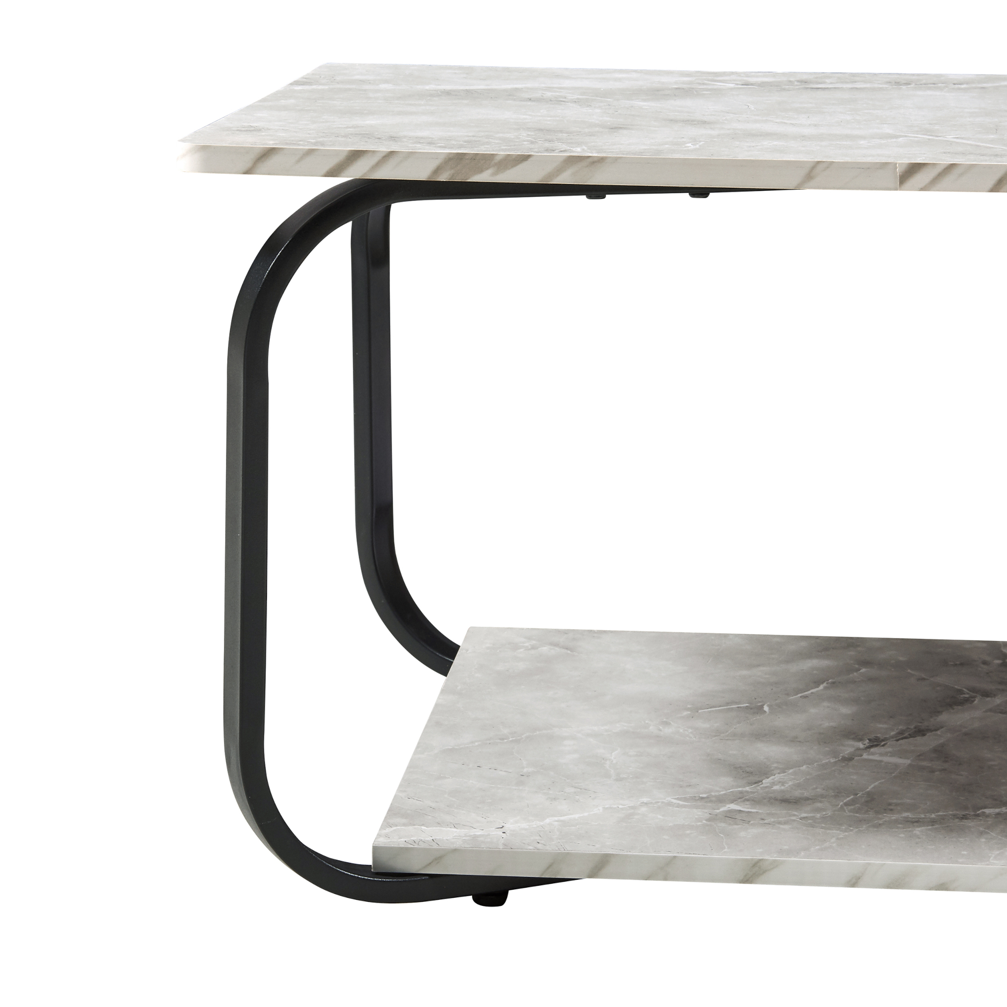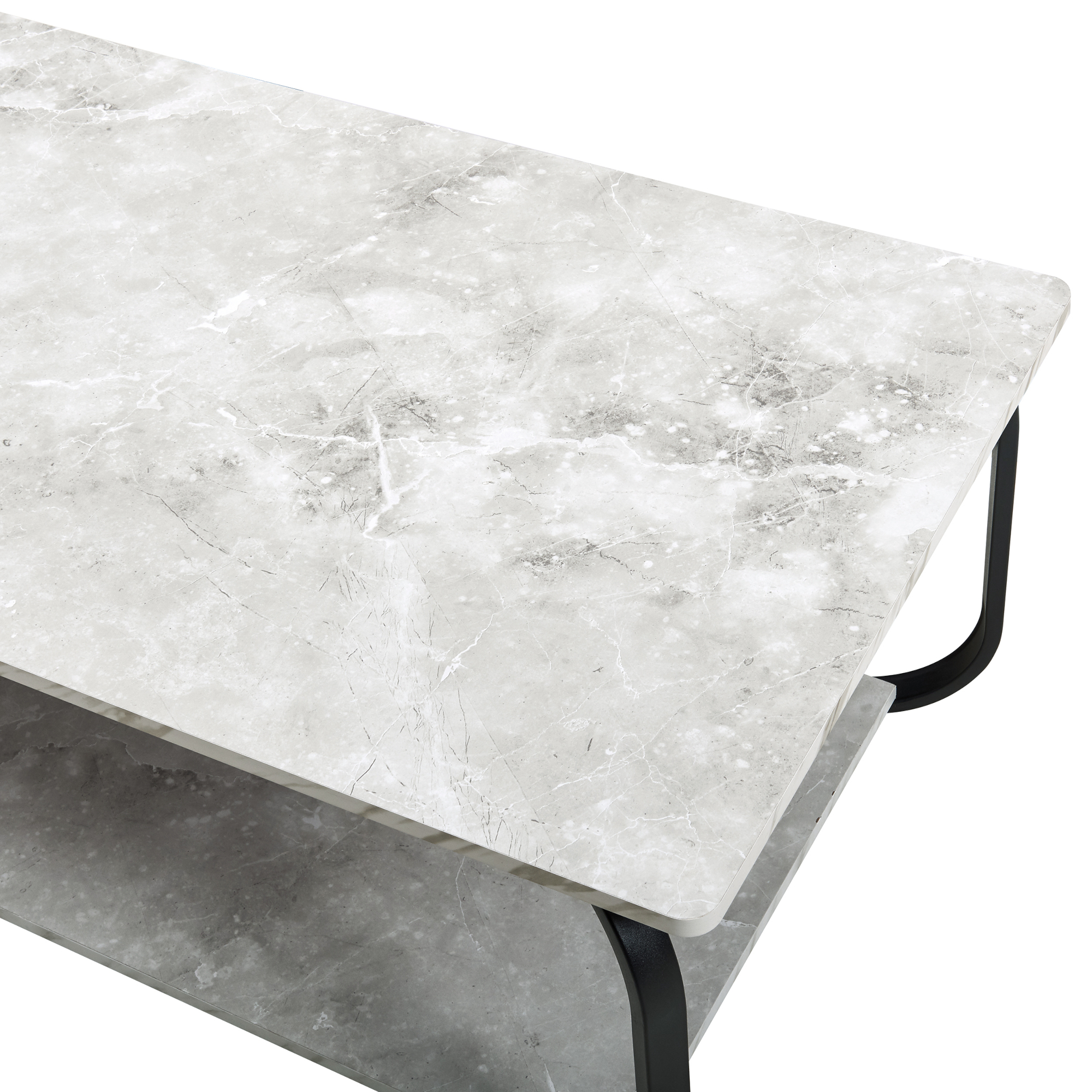 - Tischplatte + Ablage: Marmoroptik, weiß