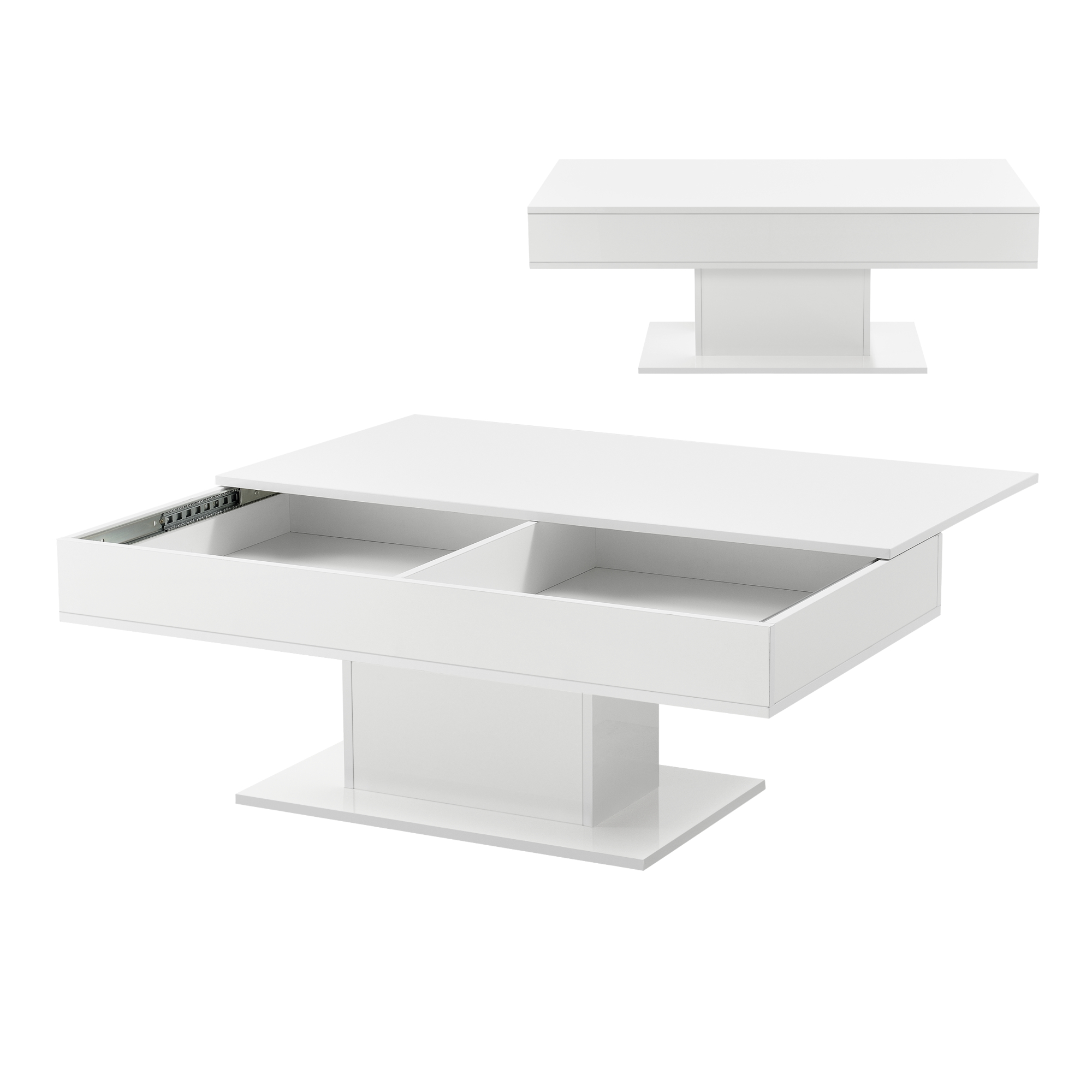 Couchtisch Lünen mit 2 Staufächern Weiß Hochglanz [en.casa]