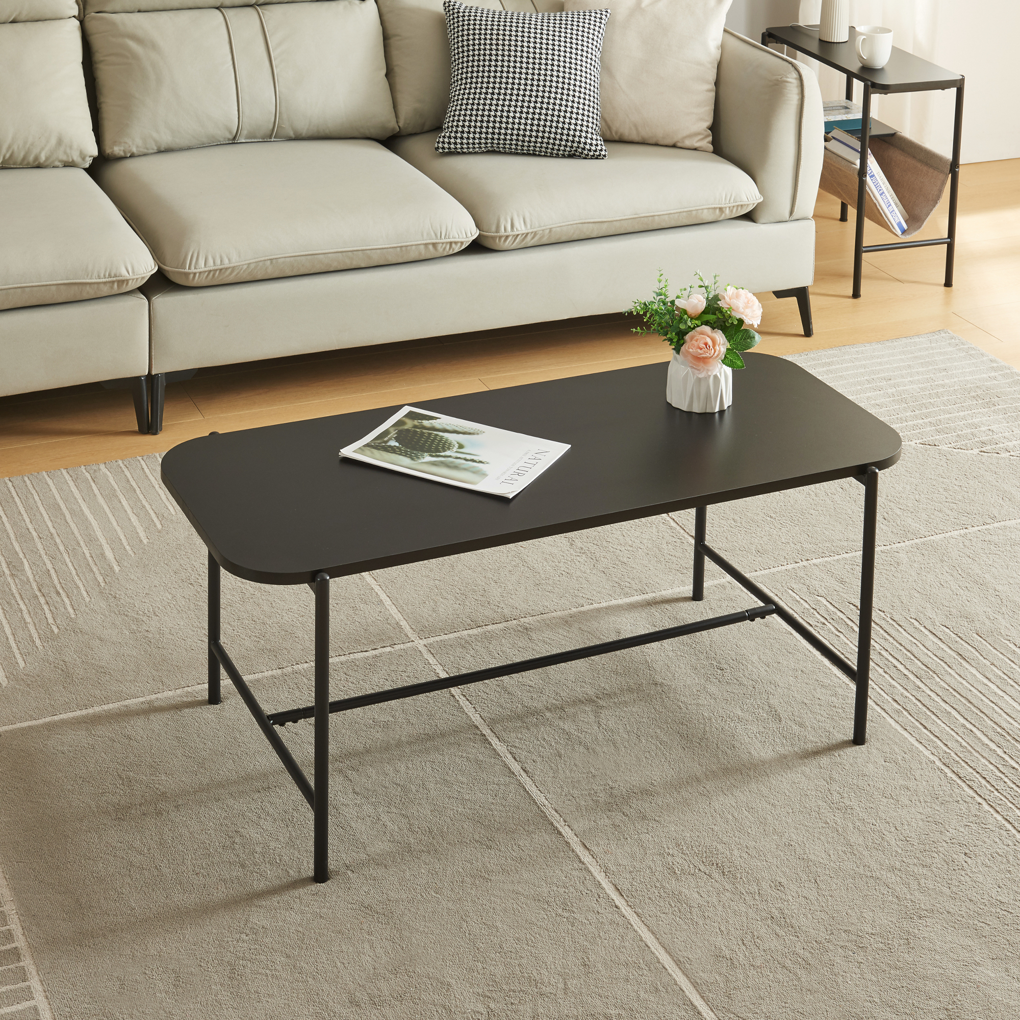 Die Optik des Couchtischs ist zeitlos und passt sich mühelos verschiedenen Einrichtungsstilen an. Ob als Ablagefläche für Zeitschriften, Fernbedienungen, Snacks, Getränke oder dekorative Gegenstände – dieser Tisch wird Ihnen stets zur Seite stehen und Ihren Wohnraum bereichern.