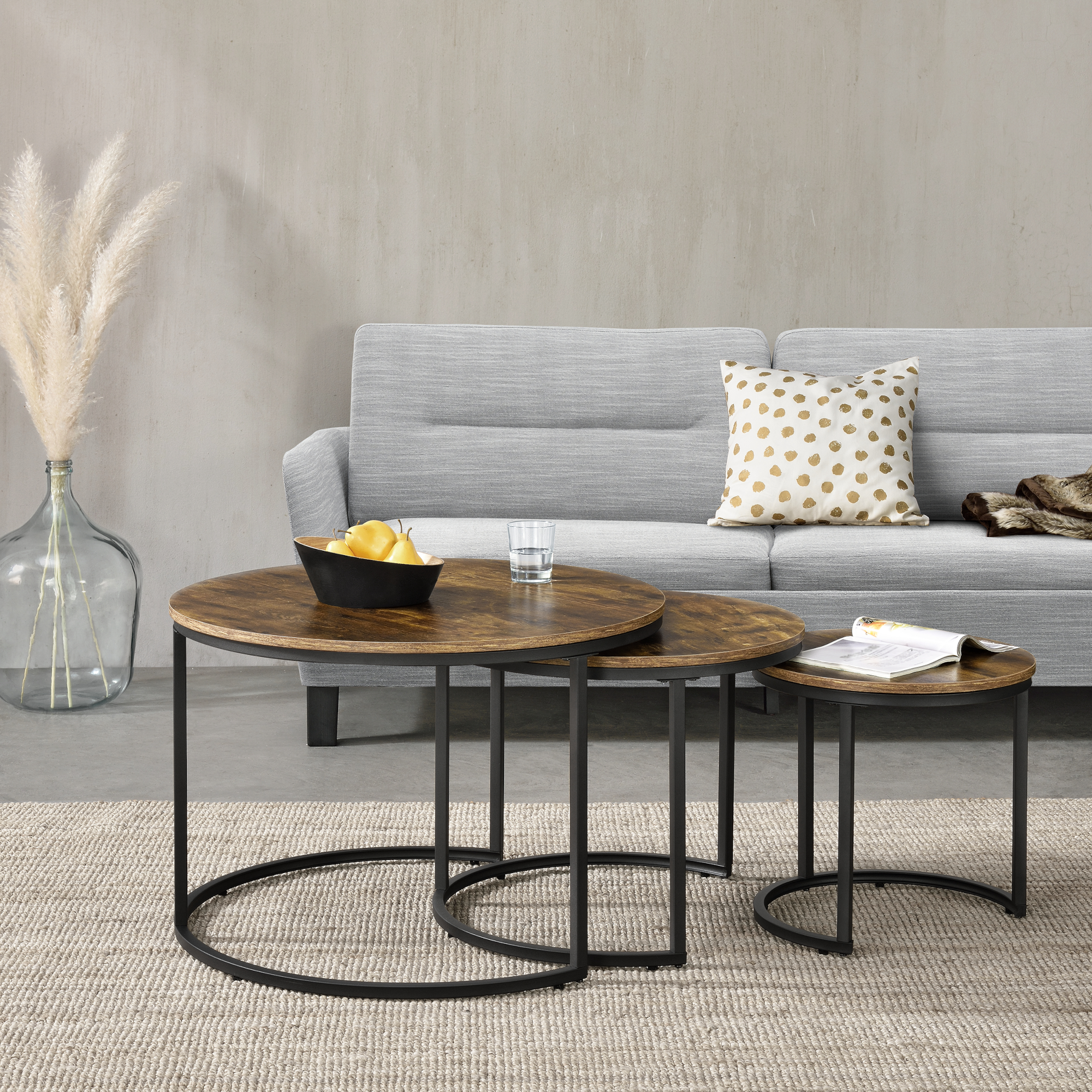 Couchtischset Arvidsjaur 3er Set Dunkler Holzton [en.casa]