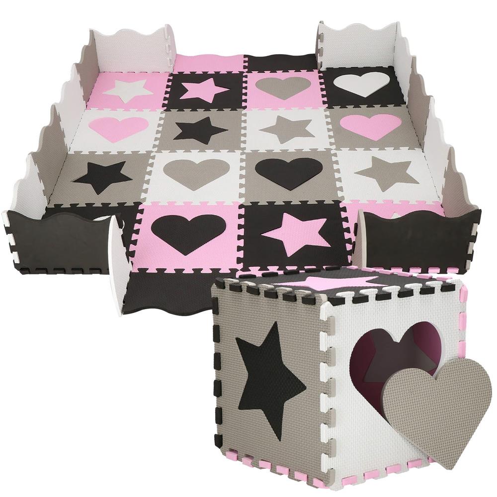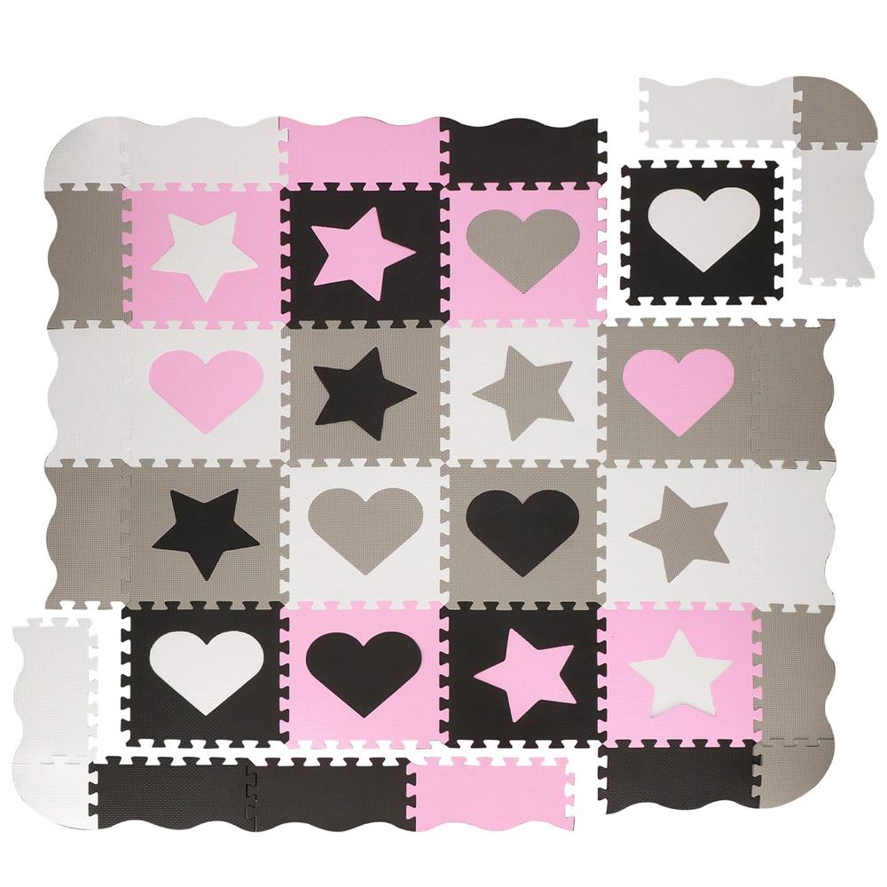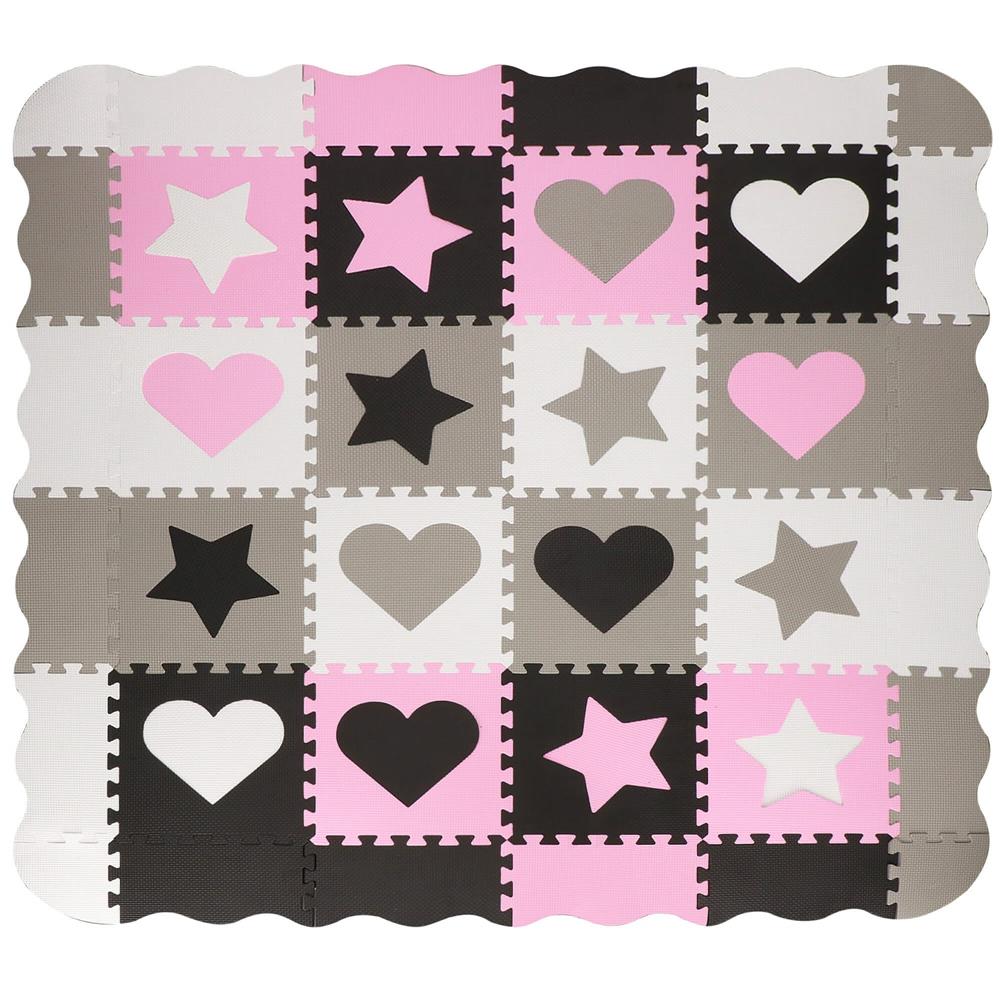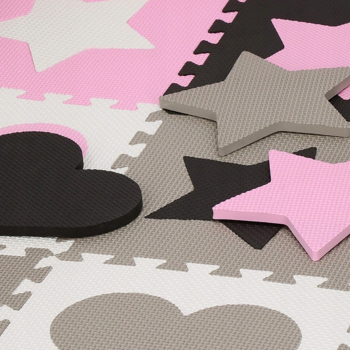 Covor din spuma pentru copii, tip puzzle forme, 52 piese, termoizolant, 150x150 cm, gri roz Household NewTrend